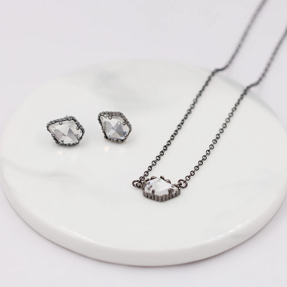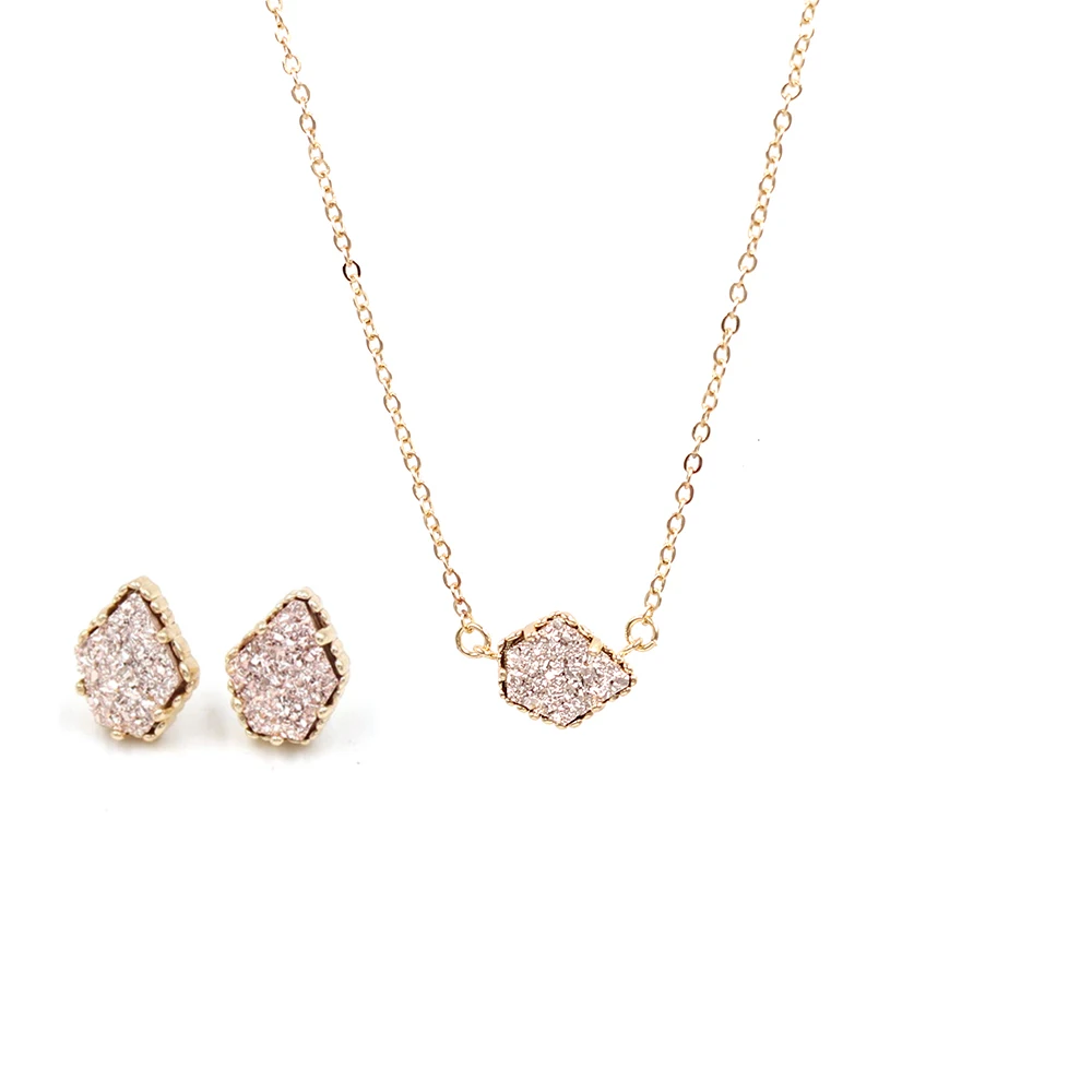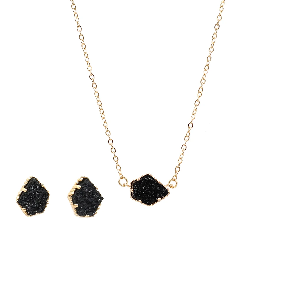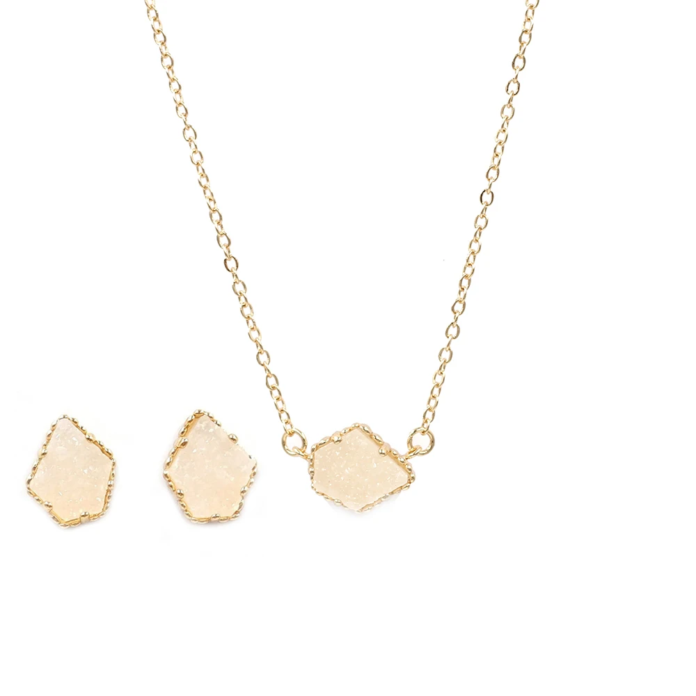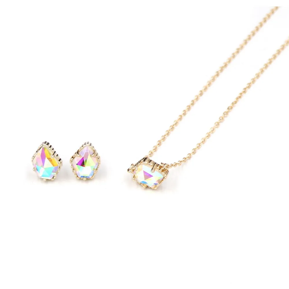 Новинка 2021 года, разноцветные пятигранные серьги-гвоздики и ожерелье с пятисторонними крапанами и драгоценными камнями из смолы, набор ювелирных изделий для женщин