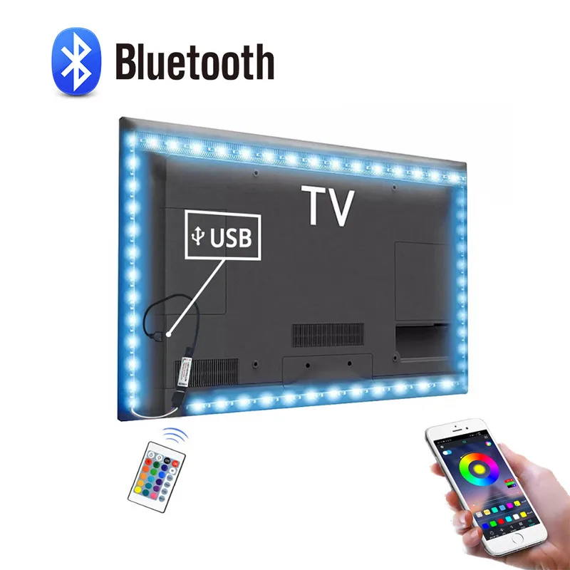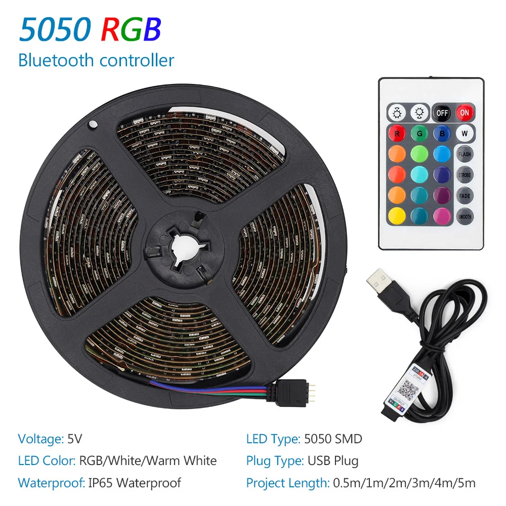 Вариант 1: 1 шт. Светодиодная лента RGB с Bluetooth APP + 1 шт. пульт дистанционного управления с 24 кнопками (аккумулятор не входит в комплект CR2025)
