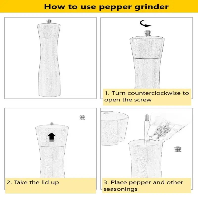 Деревянная мельница для перца, 8 дюймов, ручная мельница для перца дюйма