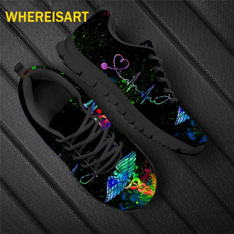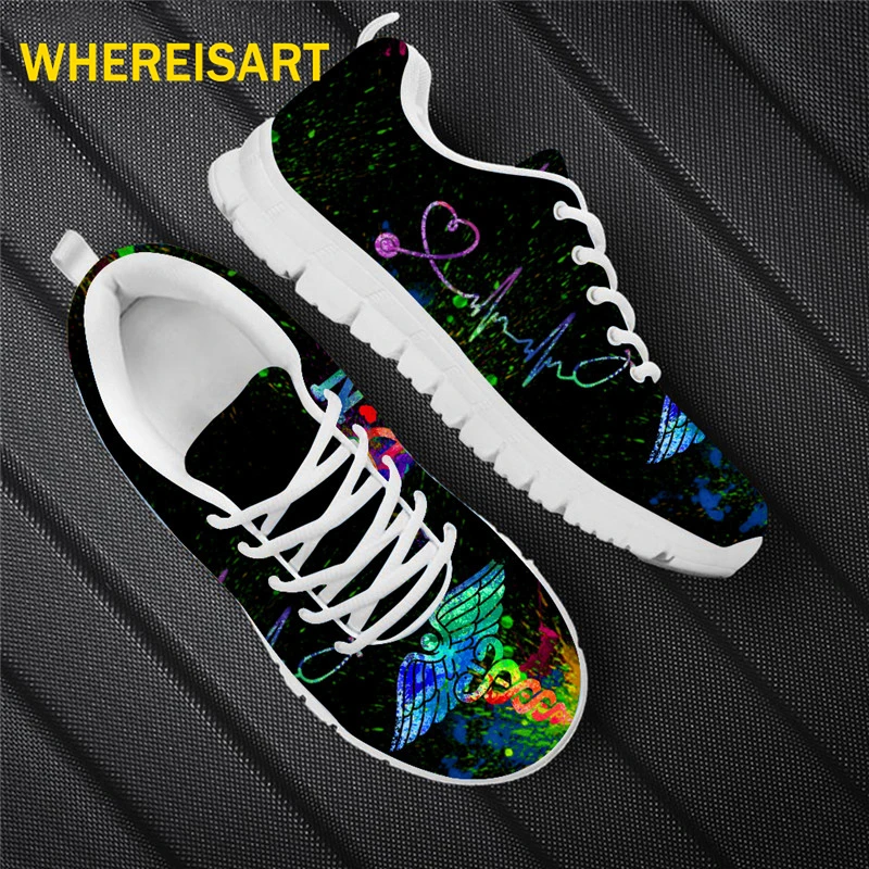 WHEREISART новая обувь для медсестры; Для женщин Heart Beat фирменного дизайна BreathLadies кроссовки Туфли без каблуков Zapatos Mujer 46 Размеры дропшиппинг