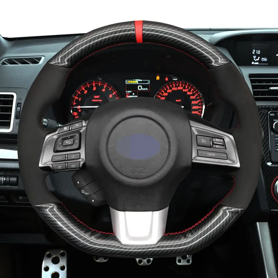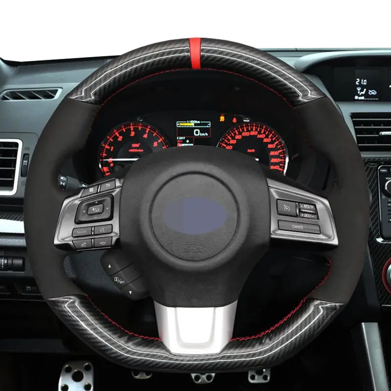 Ручное шитье углеродного волокна Черная замша чехол рулевого колеса...