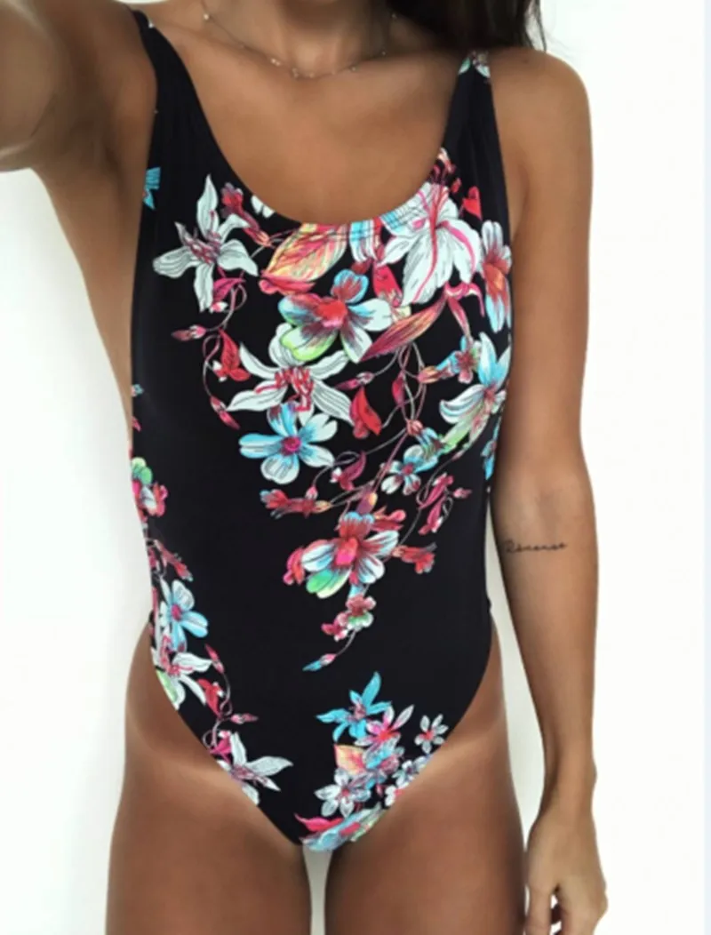 Женский Цельный купальник с цветочным принтом, с открытой спиной, 2019