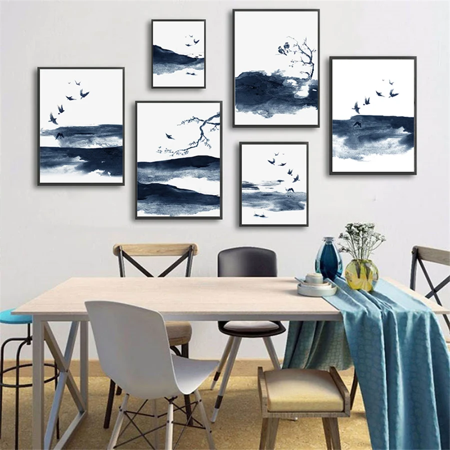 Природа живописи тушью птицы дерево горы, Настенная картина с изображением пейзажа Плакаты печатает фотографии для Гостиная Украшения в спальню
