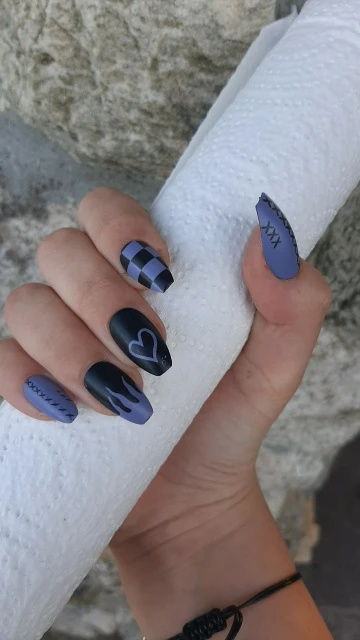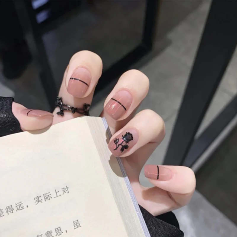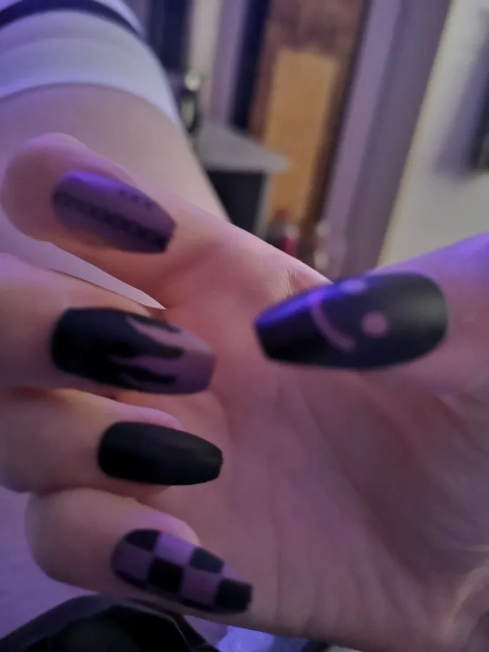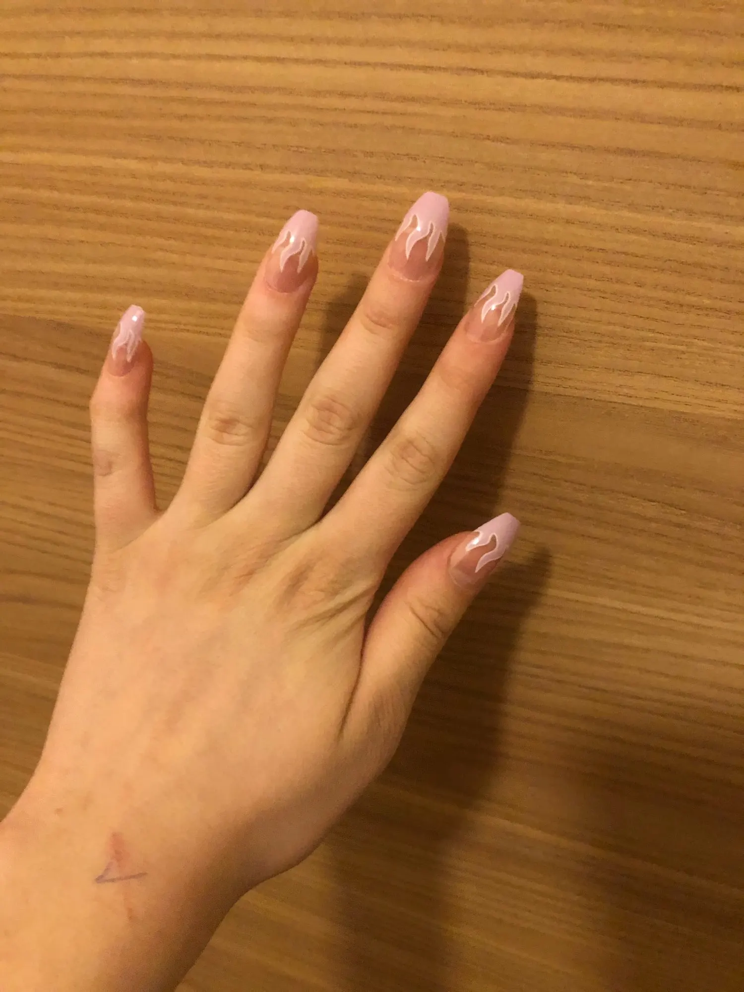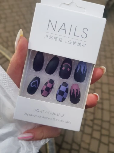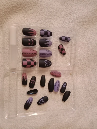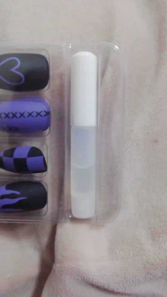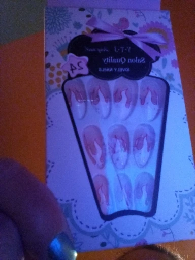 Милые накладные ногти, но рисунок кривой на некоторых ногтях. В комплекте был клей. Сами типсы прозрачные и на них рисунок огня, с продавцом не общалась, рекомендую