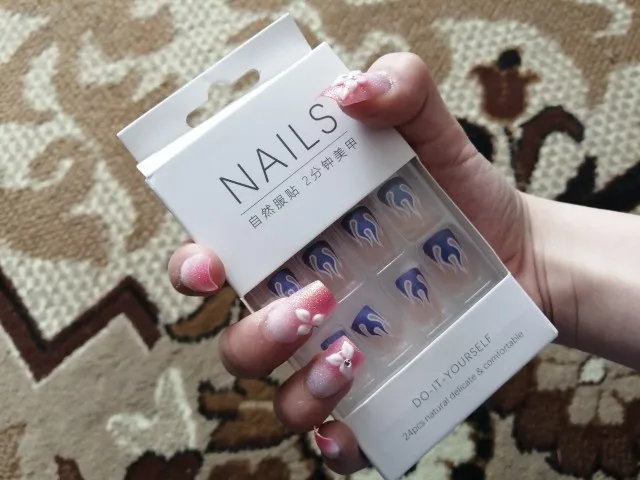 Они очень хороши и бывают разных размеров, клей, который он приносит, очень хорош, он не повреждает ногти. Плохо только то, что фиолетовый/розовый цвет начинает выходить через несколько дней