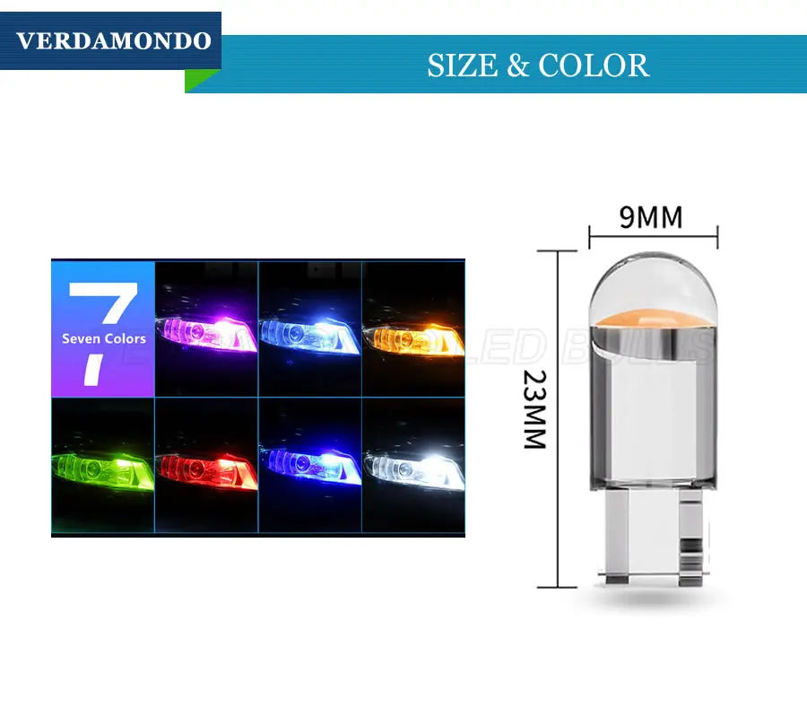2 шт. 194 W5W T10 168 автомобильная светодиодная лампа COB, указатели поворота, лампы для чтения номерного знака, 12 В постоянного тока, белый, красный, желтый