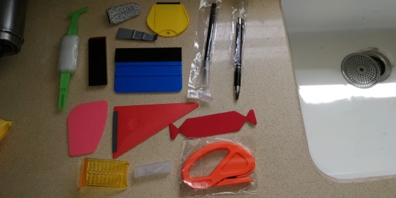 1 х Красный треугольный скребок1 x Зеленый магнитный Ракель (72 ° на берегу)1 x Желтый бритвенный скребок1 х Серый Ракель (135 градусов)Ракель PPF (75 ° и 85 °)-1 шт.1 виниловый резак1 х тканевый войлочный скребок