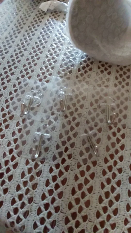 Приехало 5 крючков. Доставка в Пятерочку, довольно быстро. Внешне норм, не успела приклеить. Пару крючков помяты, но, думаю, это не повлияет на качество приклеивания.
