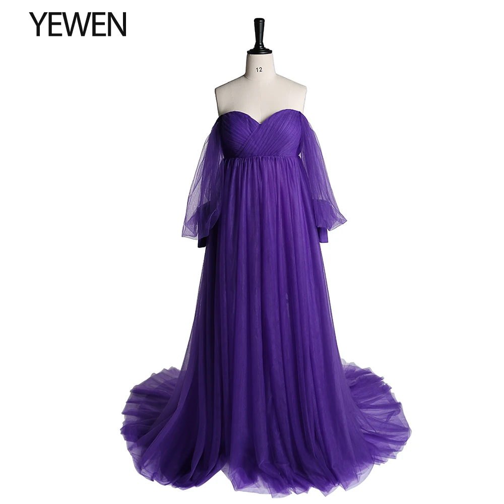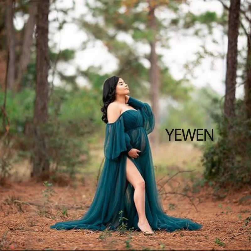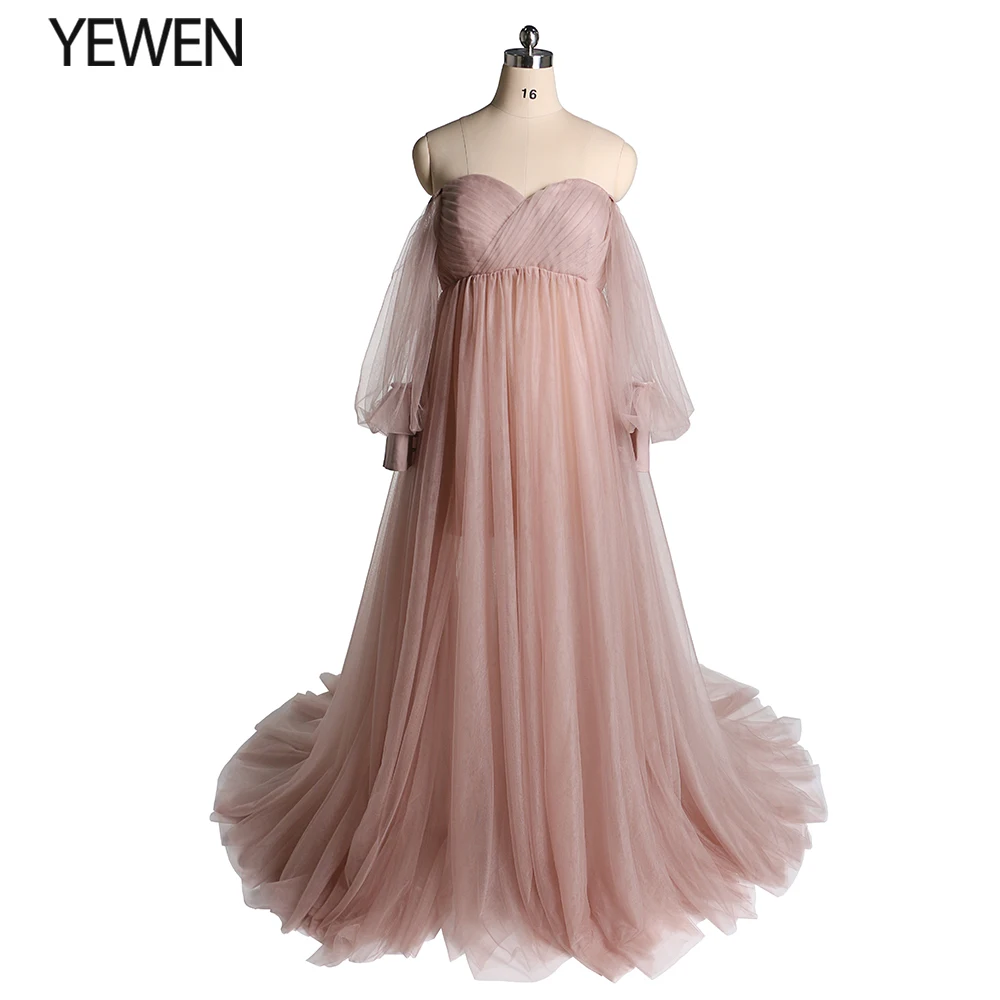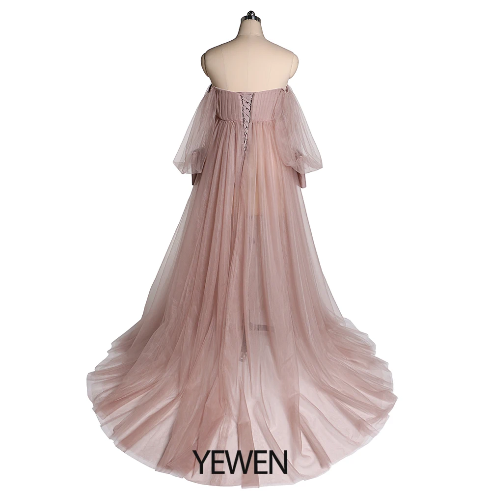 Тюлевое платье для беременных с открытыми плечами на шнуровке сзади и открытой передней частью для фотосъемки Yewendress
