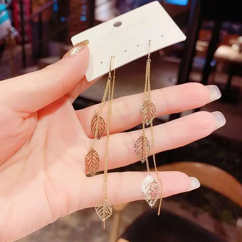 Винтажные металлические серьги-подвески с полыми листьями, длинные висячие серьги с кисточками, корейские простые изысканные женские украшения для ушей