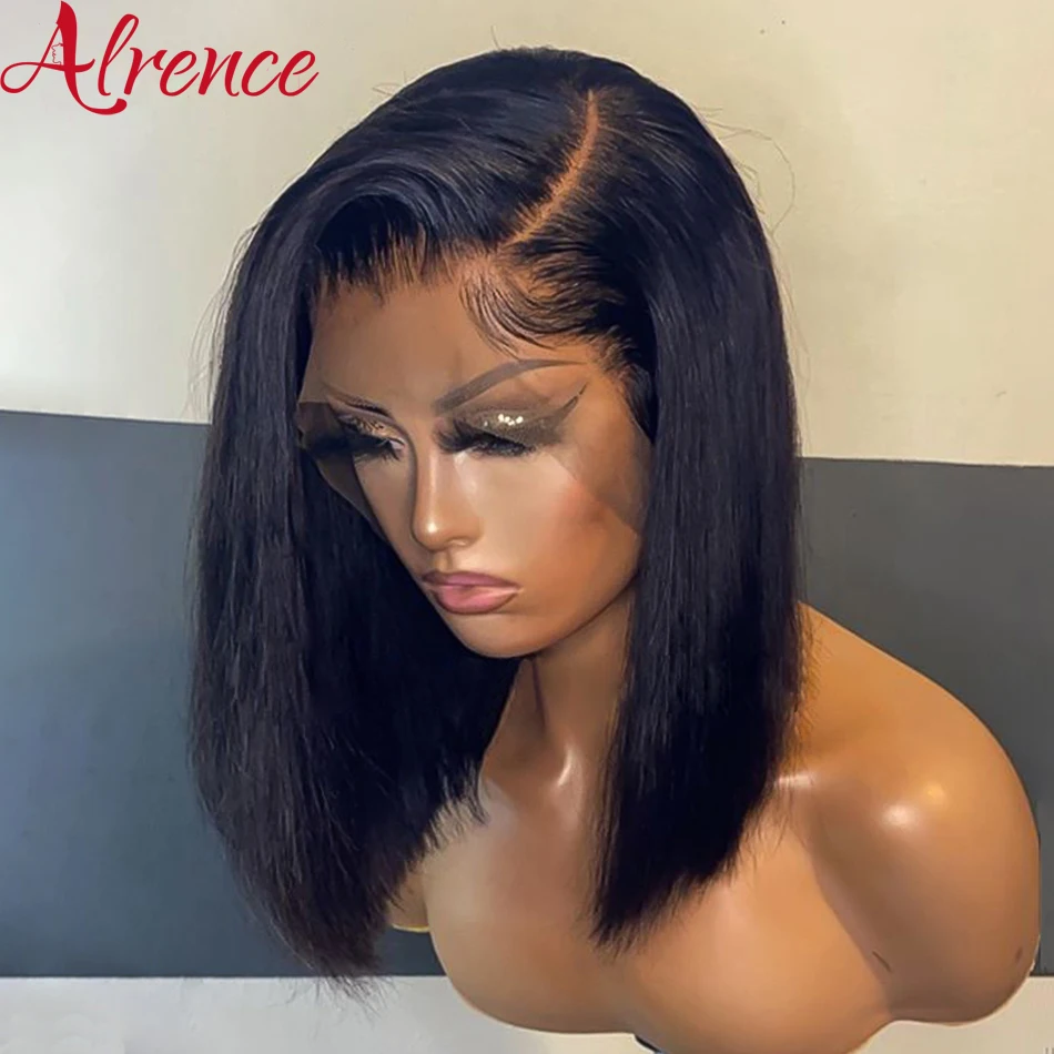 Прямые короткие парики боб для черных женщин бразильский парик Боб парик на шнуровке передние человеческие волосы парики плотность 150 4x4 парик на застежке натуральные волосы
