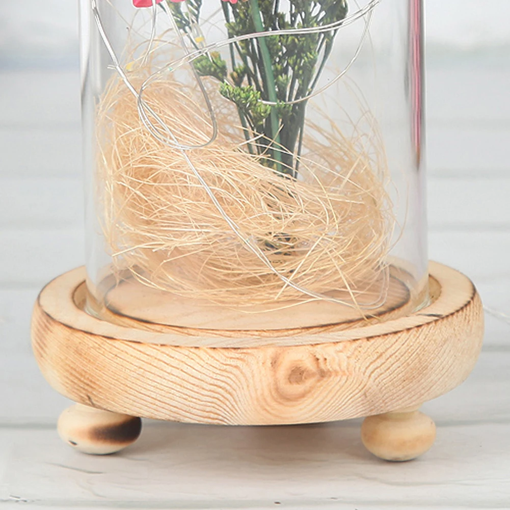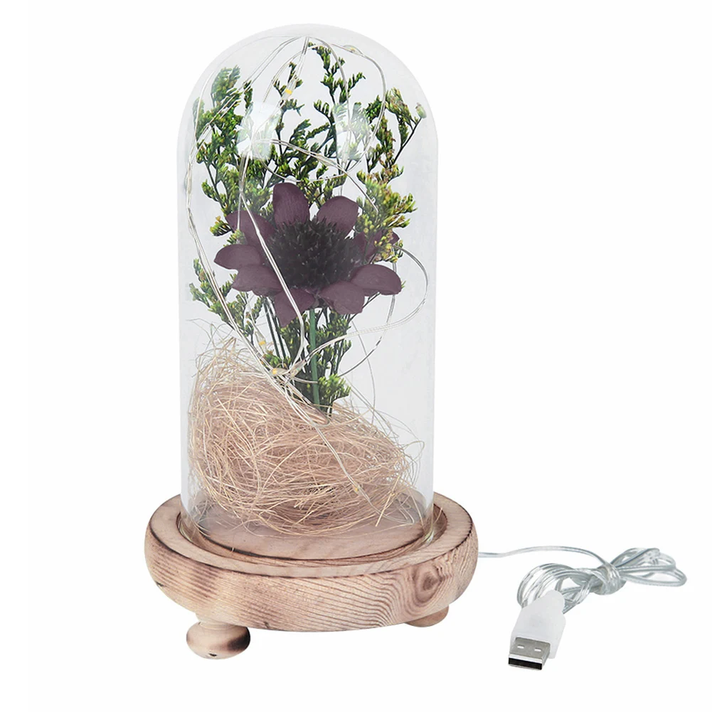 Романтический подарок для женщин, День Св. Валентина, сушеный Подсолнух, светодиодная гирлянда в стеклянном куполе на деревянной основе, декор для свадебной вечеринки