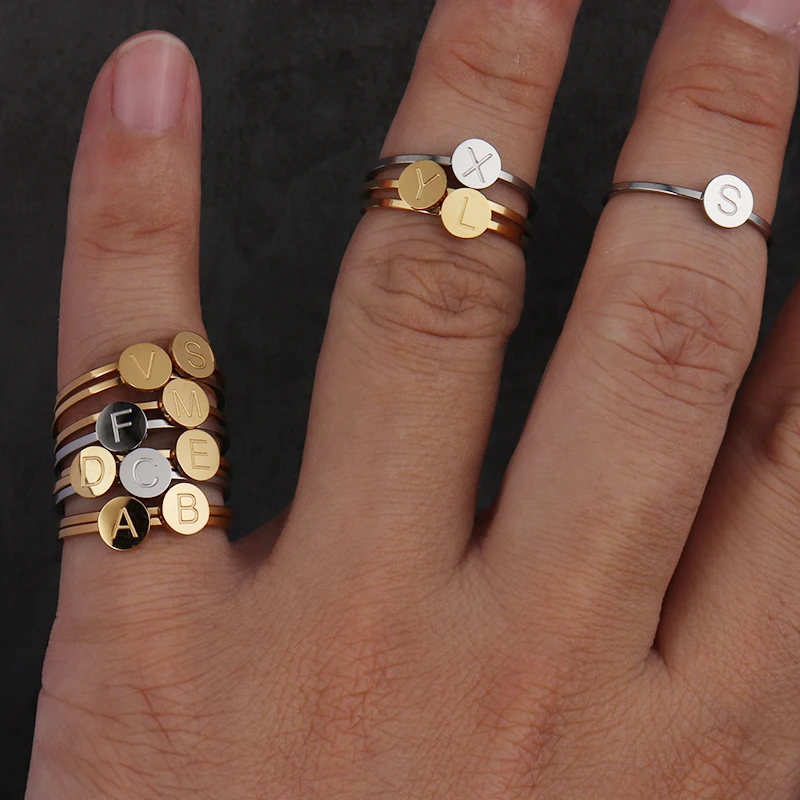 Кольцо женское из нержавеющей стали, с буквами, с инициалами сердца и звезды, Золотое кольцо для пары