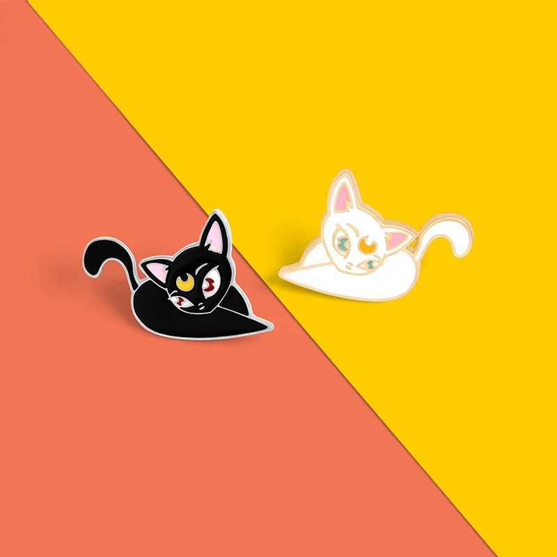 Брошь на лацкан в готическом стиле, с изображением ведьмы, шляпы ведьмы и кошки, черного цвета, в форме полумесяца, Ювелирное Украшение, коллекция булавок