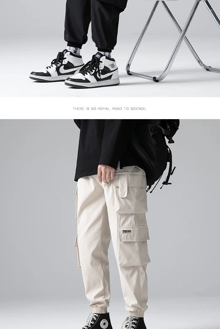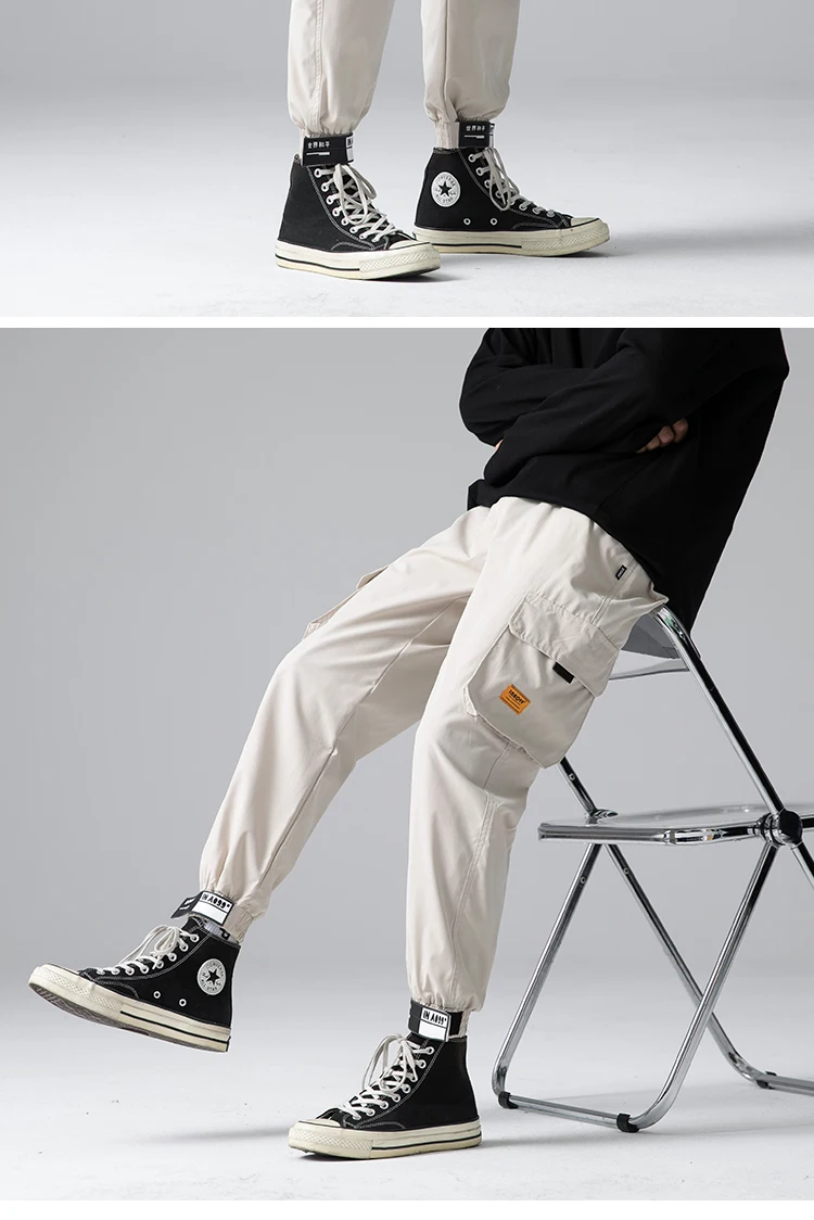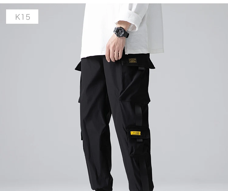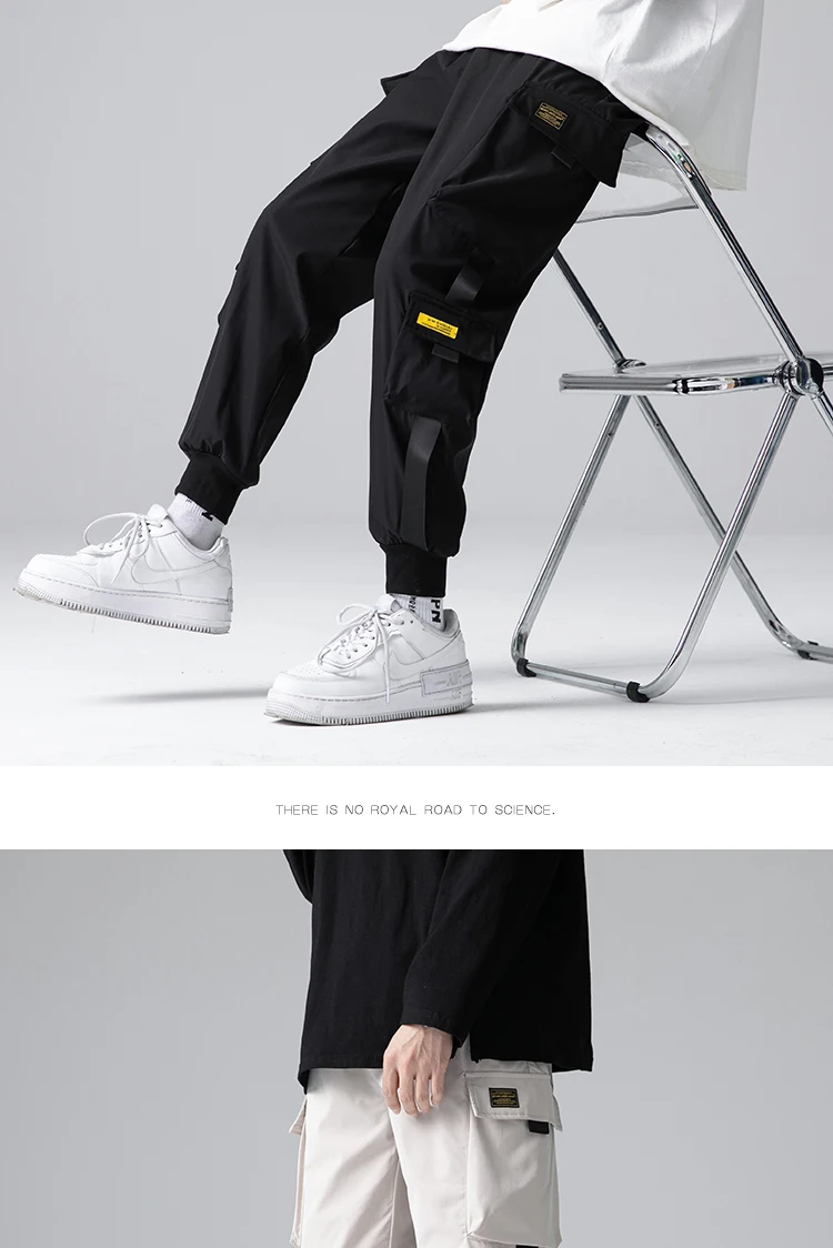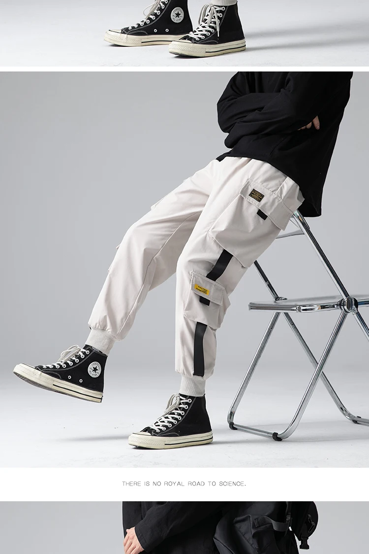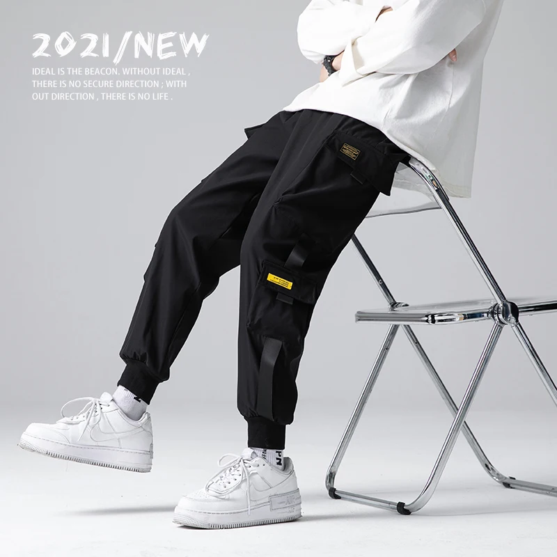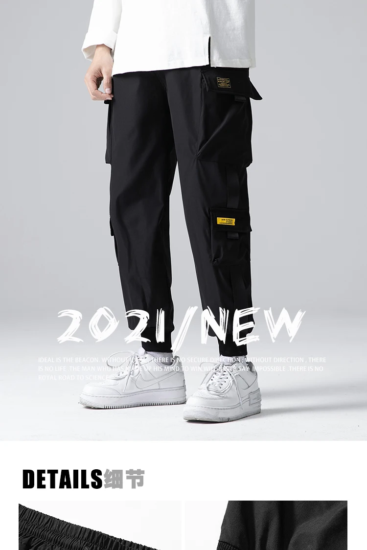 Джоггеры-шаровары с лентами, мужские брюки-карго, уличная одежда 2022, повседневные спортивные брюки в стиле хип-хоп с карманами, мужские Модные брюки в стиле Харадзюку