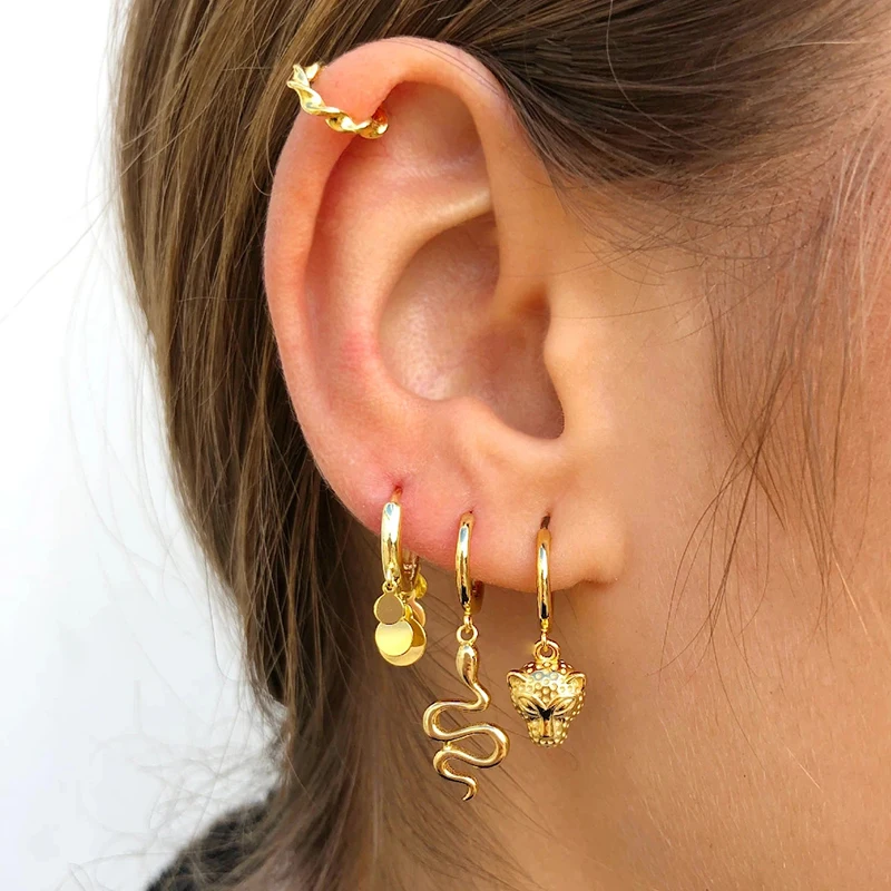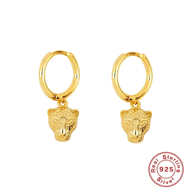 Aide 925 браслет с головой леопарда из стерлингового серебра золотые серьги-кольца для женщин стильный принт с животными, подвески с маленькими круглыми Huggie серьги панк ювелирные изделия
