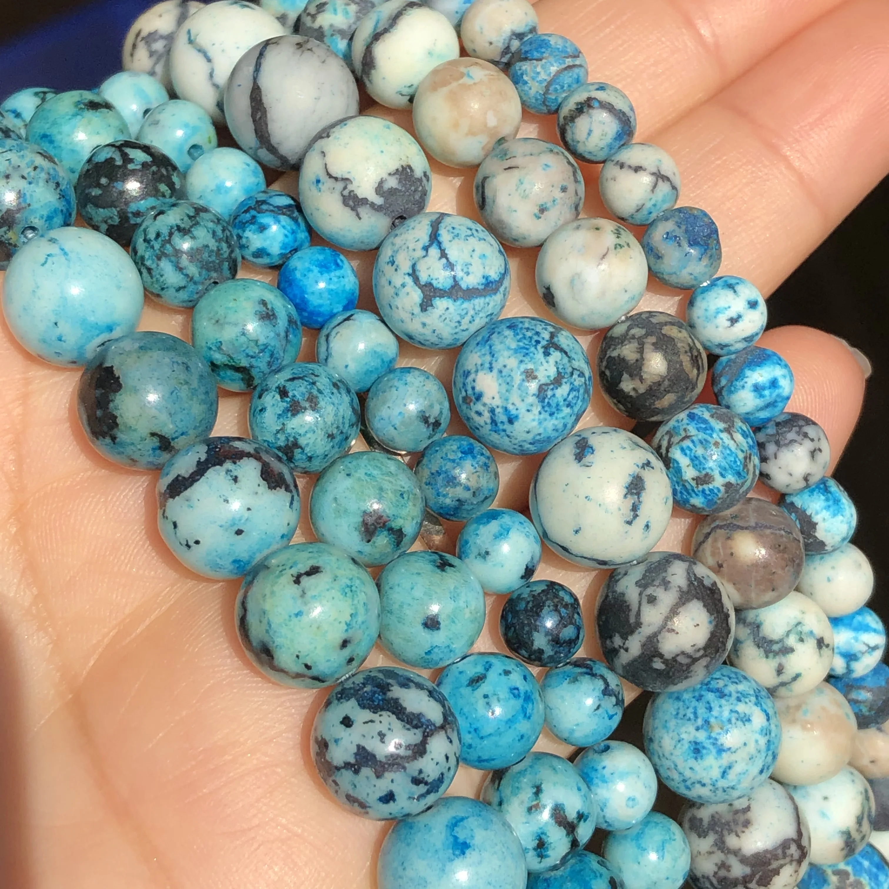 Натуральный Камень Синий Африканская бирюза круглые бусины Свободные Spacer Бусины для изготовления ювелирных изделий 6810 мм 15''Inch браслетов или бус своими руками