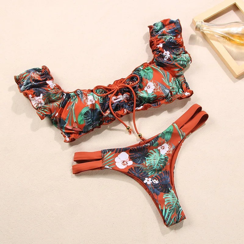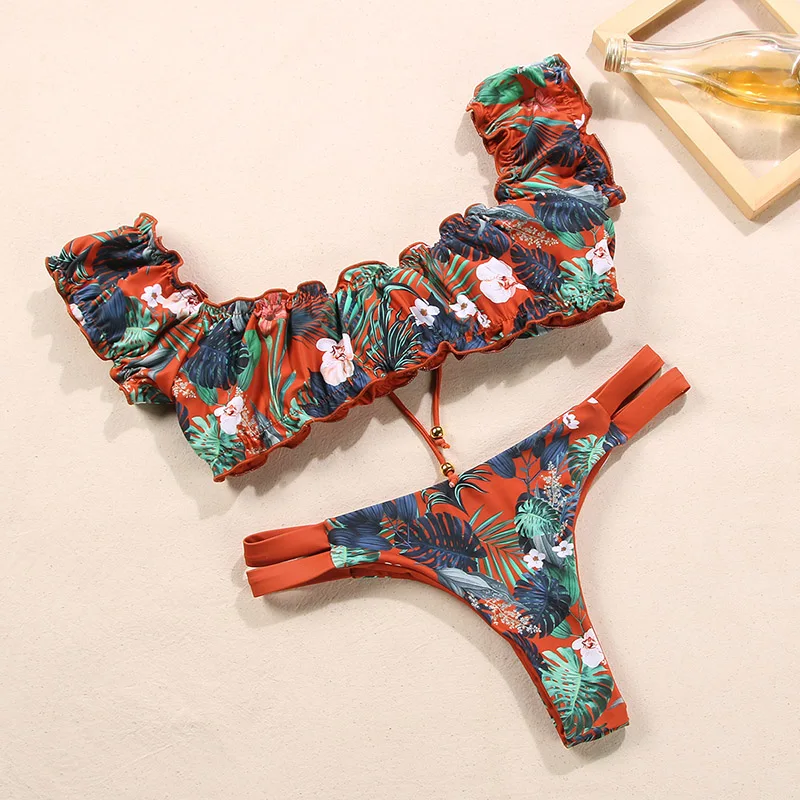 Купальник-бикини Zrtak с цветочными оборками, купальник с высокой т...
