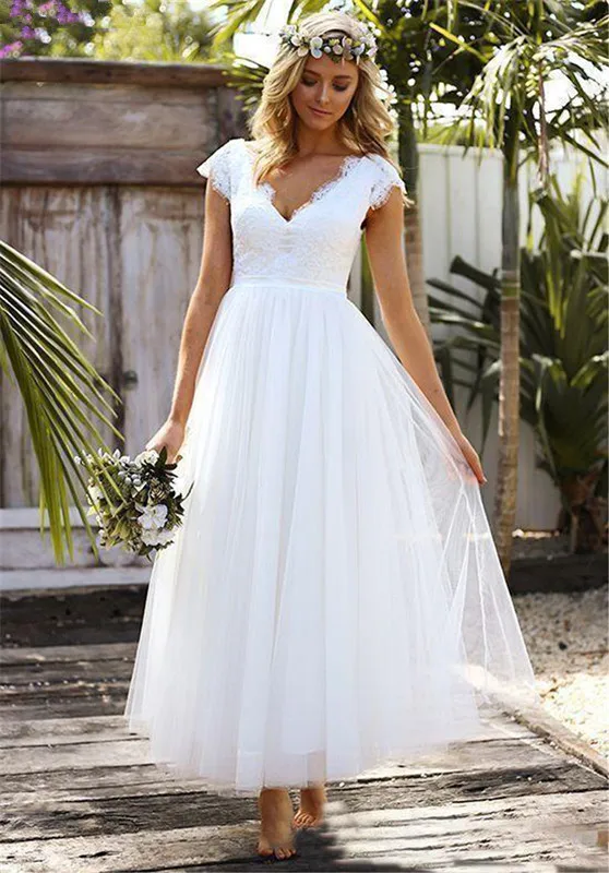 Короткие свадебные платья, белое кружевное платье длиной до середин...