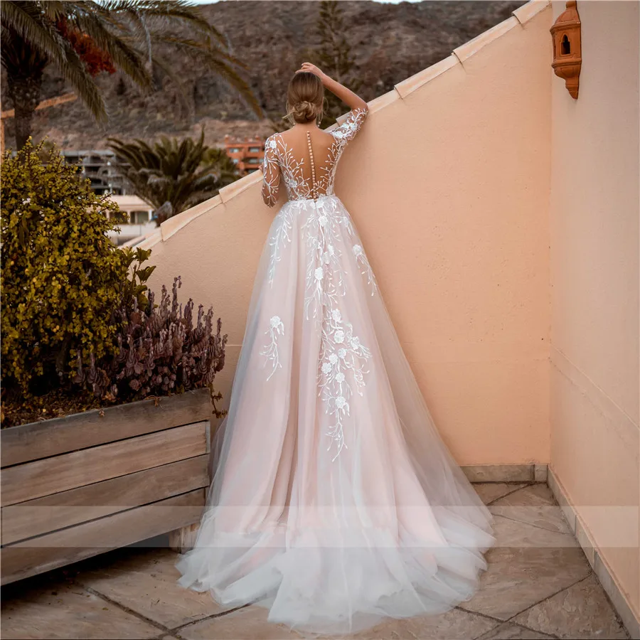 Румяна светло-розовое свадебное платье 2021 с коротким рукавом Цветочная Кружевная аппликация Тюлевое длинное свадебное платье принцессы прозрачные платья невесты