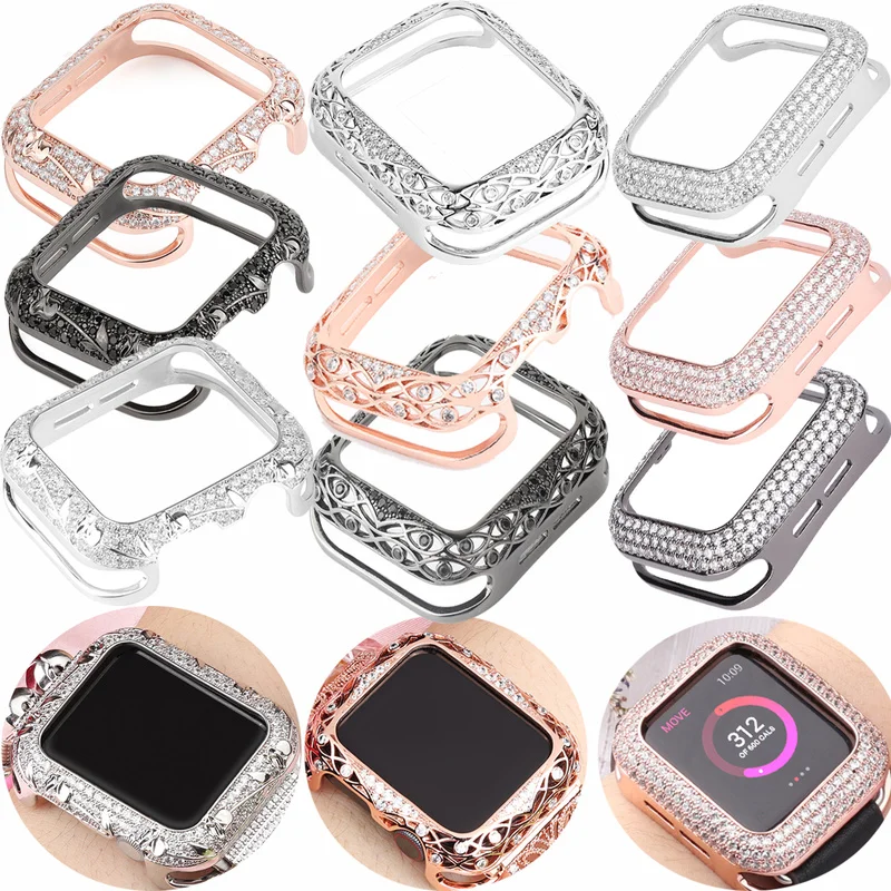 Новый роскошный металлический чехол со стразами для Apple Watch Series 7 6 5 4 3, чехол-бампер, Жесткий Чехол для iWatch 38 мм 40 мм 42 мм 44 мм 41 мм 45 мм