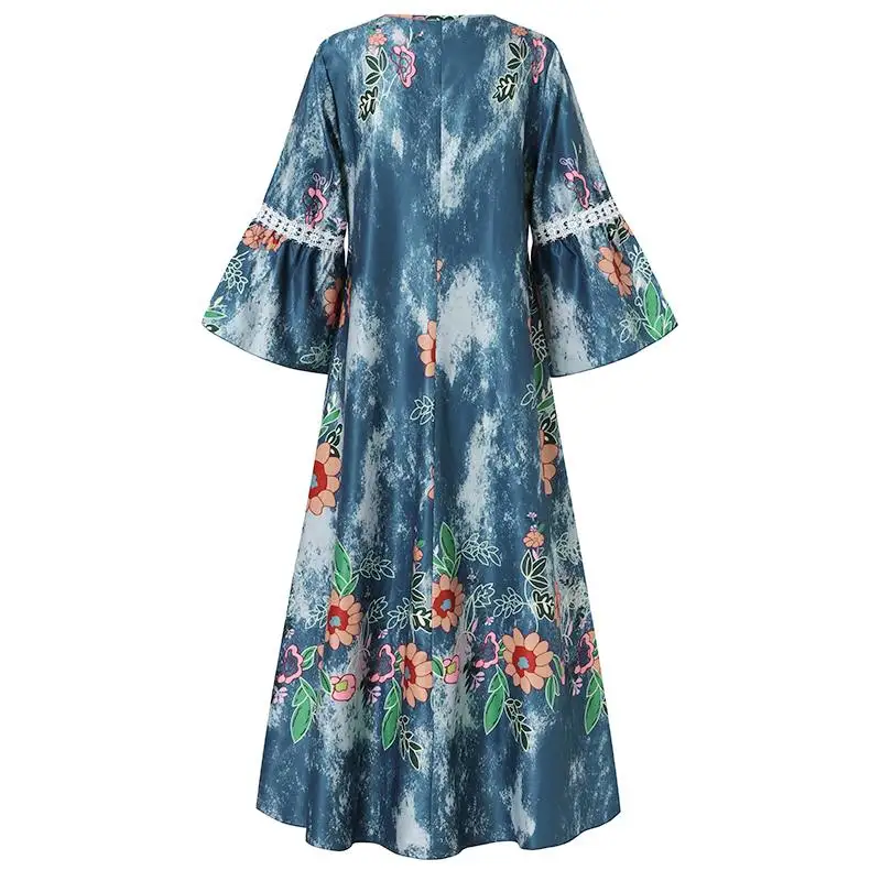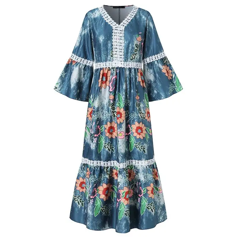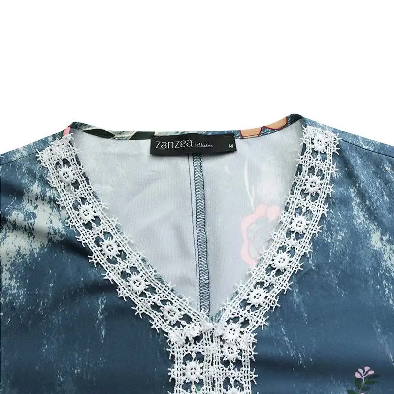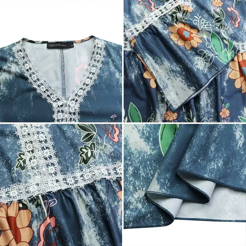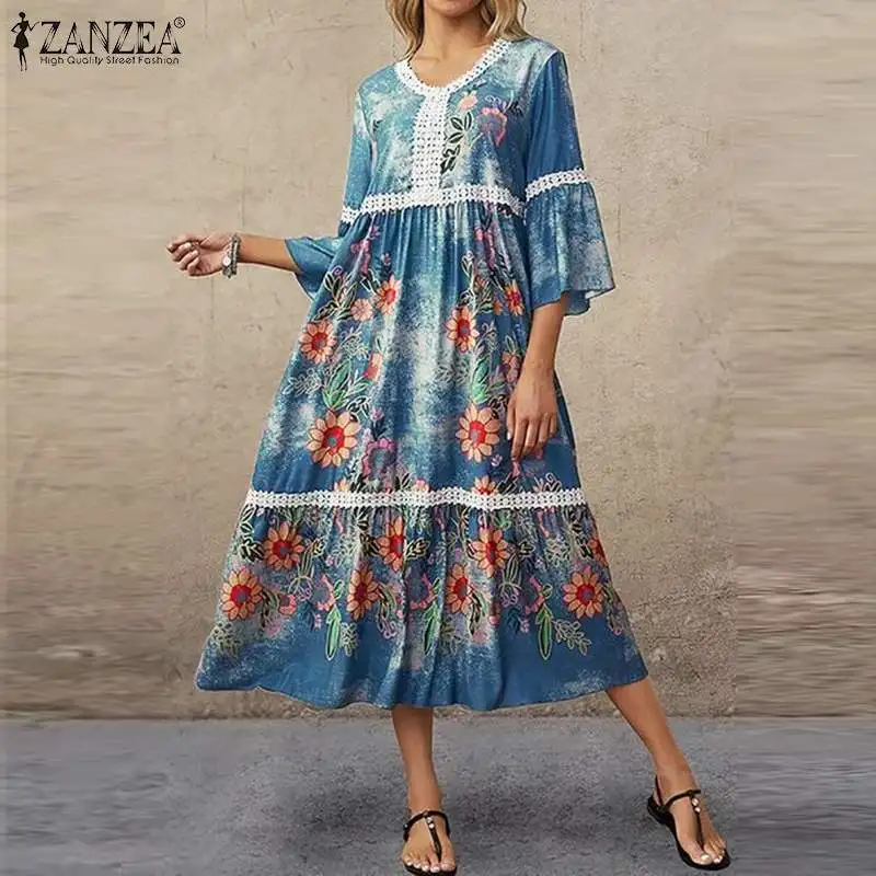 Платье ZANZEA женское с V-образным вырезом и Расклешенным рукавом, праздничный пляжный сарафан с богемным принтом, кружевное кроше, 7, лето 2021