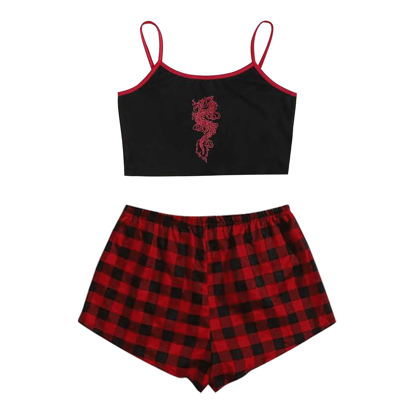 Модная сексуальная пижама Dragon белье с рисунком, соблазнительное нижнее белье, пижамный комплект, женская пижама без рукавов, милый топ на бретельках и шорты