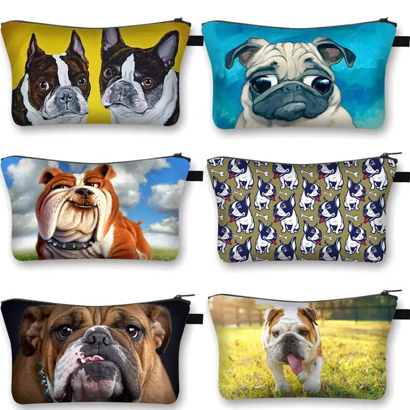 Симпатичная мультяшная косметичка с принтом французского бульдога, мини-сумка для путешествий, аксессуары для макияжа, органайзер для собак, домашних животных, чехол для туалетных принадлежностей