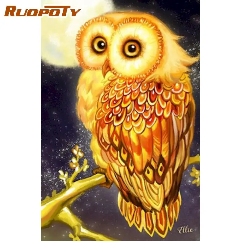 Алмазная живопись RUOPOTY 5D сделай сам, картина с изображением Золотой совы, полная выкладка, блестящая картина, домашние украшения