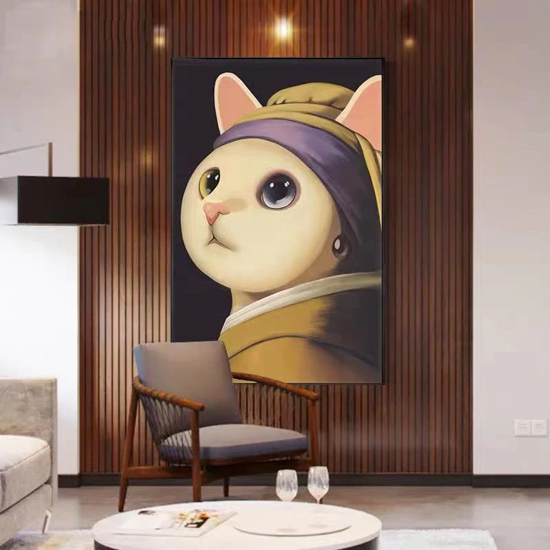 Наборы для вышивки крестом, 11CT, с печатным рисунком, с изображением мультяшного кота, с жемчужными серьгами, для домашнего декора