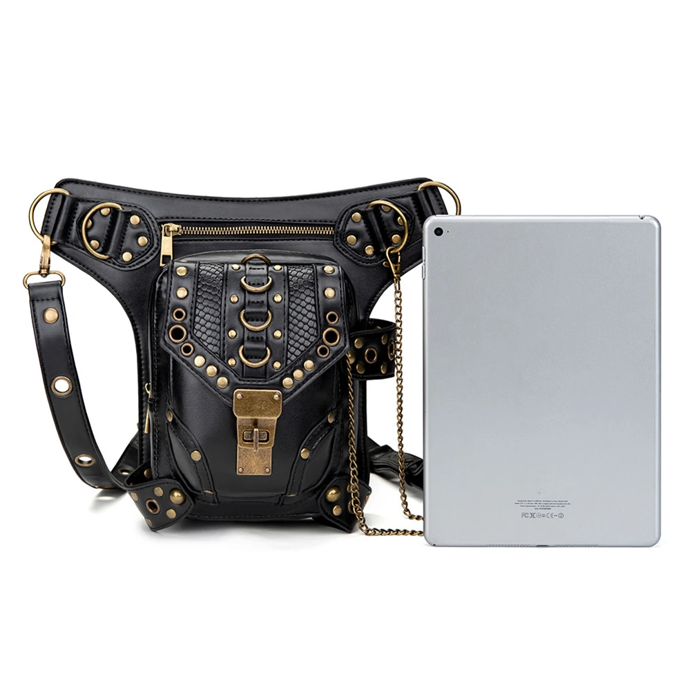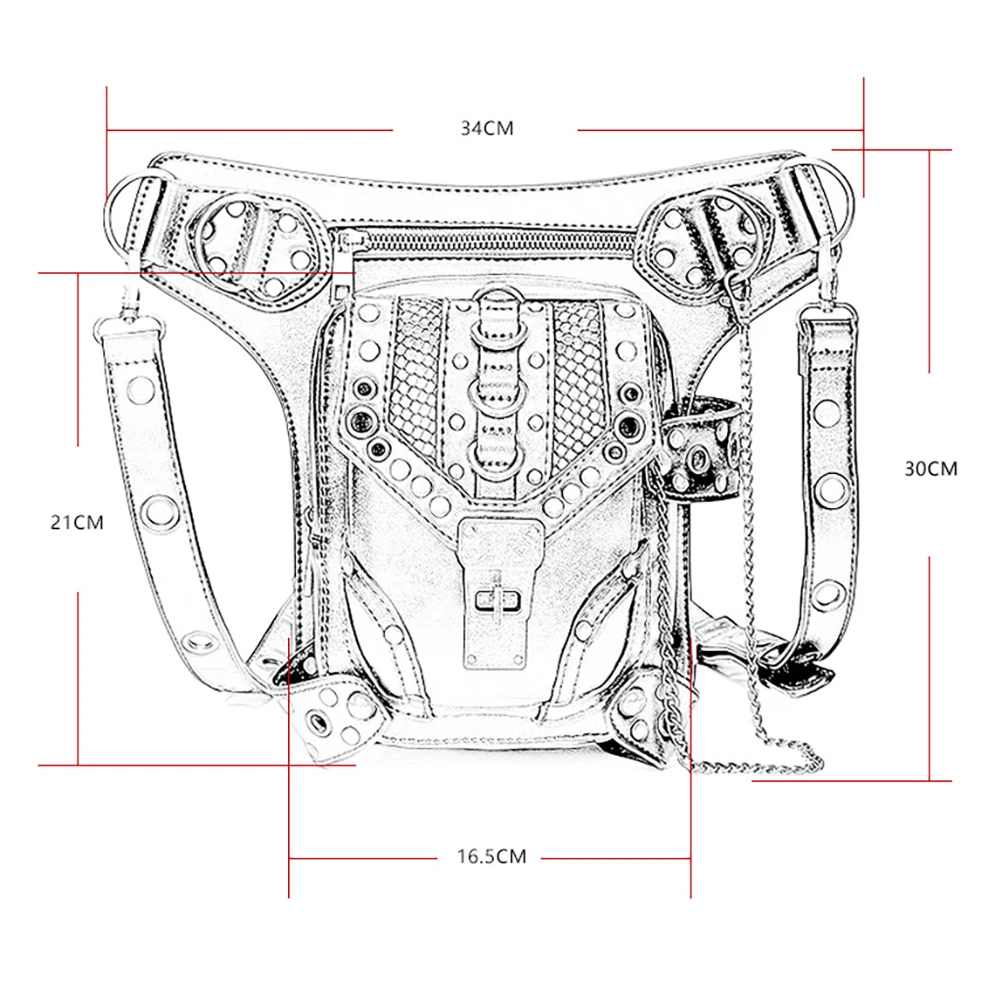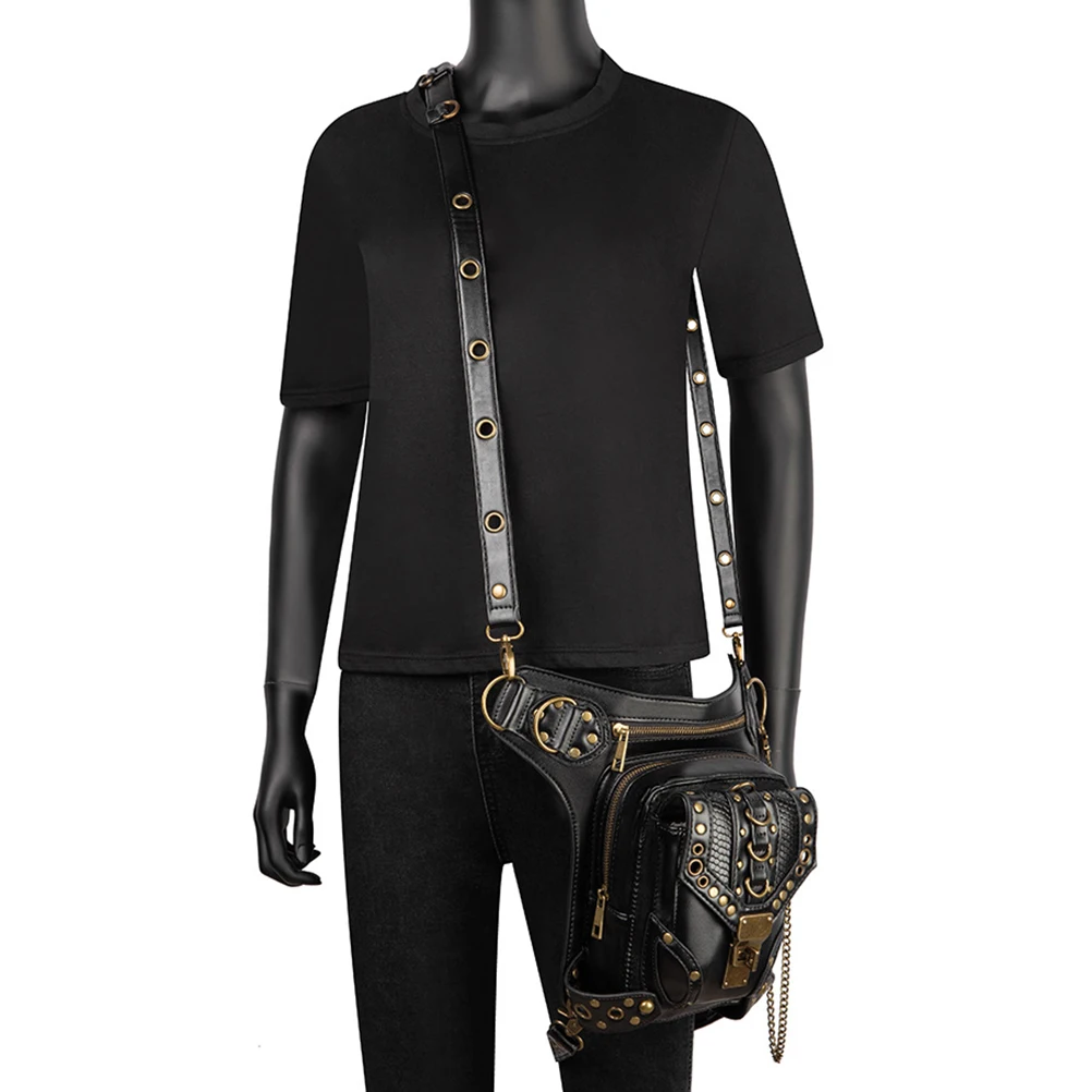 Винтажный кожаный мессенджер в стиле панк, готическая ретро сумка через плечо, нагрудная мотоциклетная сумочка в стиле панк, мессенджер на бедро