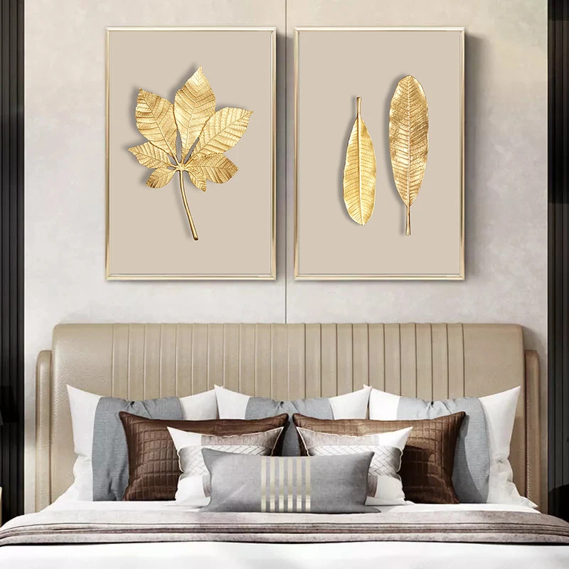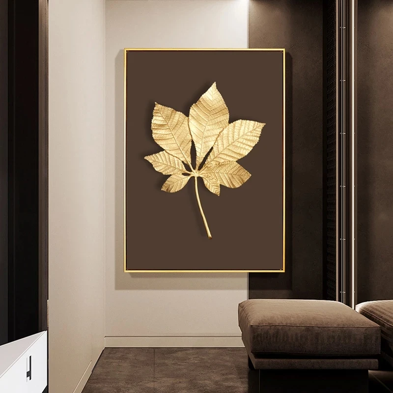 Роскошная Абстрактная Картина на холсте с изображением золотых растений и цветов, Постер для украшения дома, кленовые листья гинкго, настенные художественные принты, декоративная картина