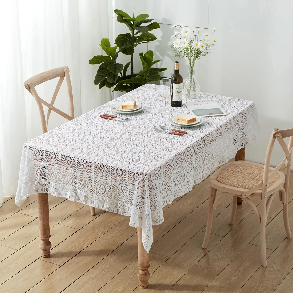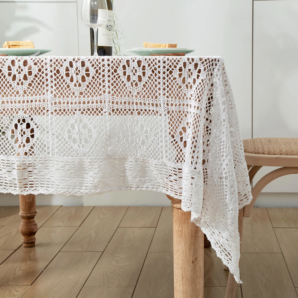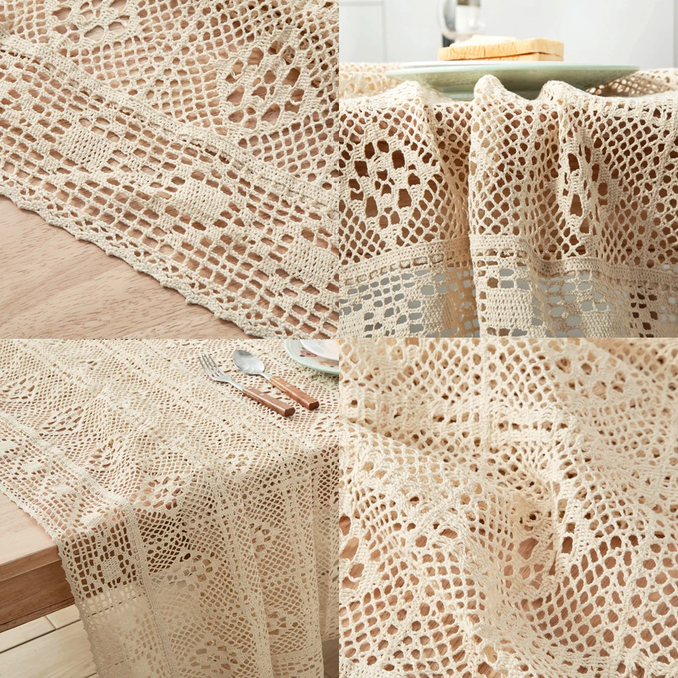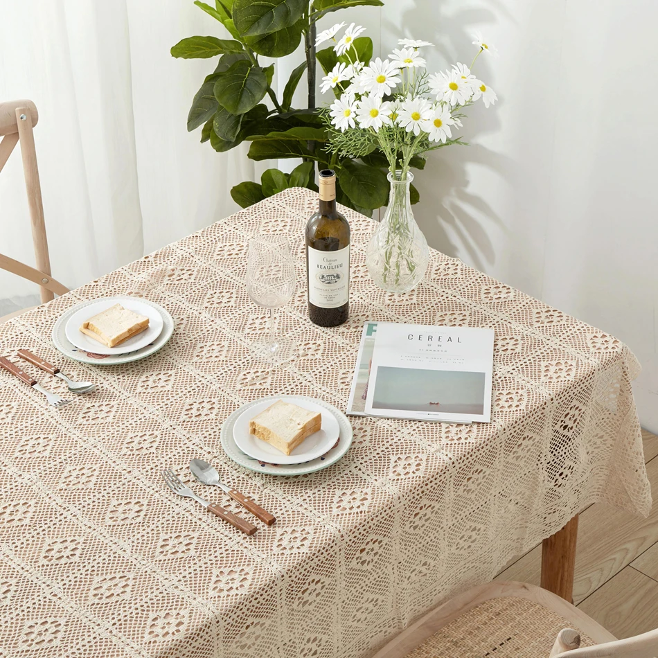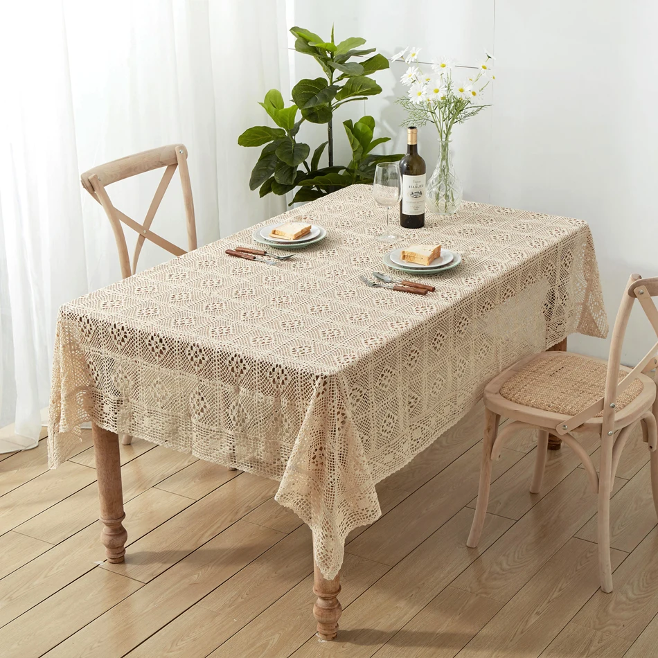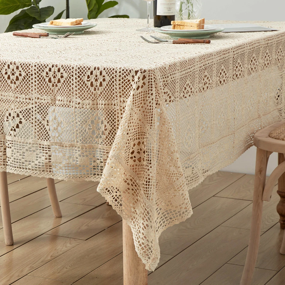 Вязаная крючком скатерть, домашний декоративный прямоугольный кружевной бежевый кофейный столик для гостиной, тканевый коврик