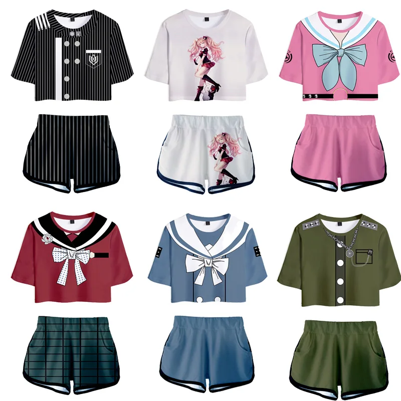 Danganronpa V3 Дзюнко Эносима Косплей футболка шорты костюмы для женщин Maki Harukawa рубашки с коротким рукавом футболки спортивная одежда для девочек
