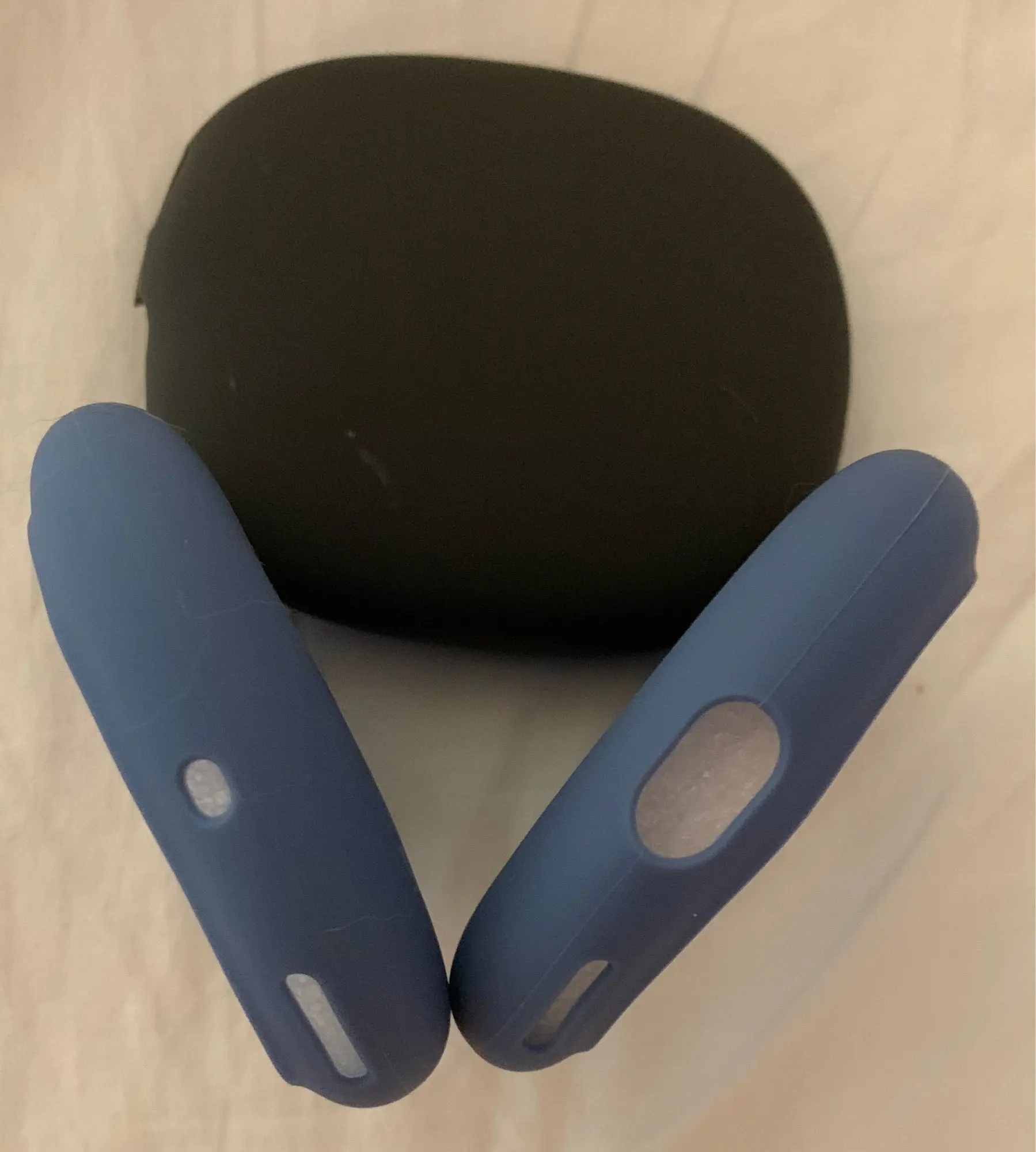 Силиконовые протекторы для наушников AirPods Max, которые необходимы для предотвращения постоянного покраснения между двумя наушниками, не оставляя следов, а также для защиты внешней части. Минимальная разница в цвете от синих максимальных аэродромов и этих силиконовых протекторов не заметна. Очень важно, потому что если я выбрал цвет, я не хочу его скрывать, а прозрачный силикон никогда не будет таким мягким и приятным на ощупь! У них есть все отверстия, чтобы они не записывали датчик максимального AirPods, и их очень легко разместить и снять. Те, кто видит между защитниками покупки, пришли с чехлом, который я купил, чтобы защитить максимальные AirPods от всего, пока они не используются, и мне было трудно их носить, Ну, я не мог оценить этот красивый синий от AirPods Max. Я наконец нашел их на Aliexpress и не позволил мне избежать возможности купить их. Они очень хорошие, и я рекомендую их без сомнения!