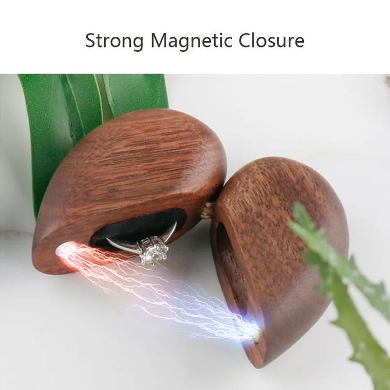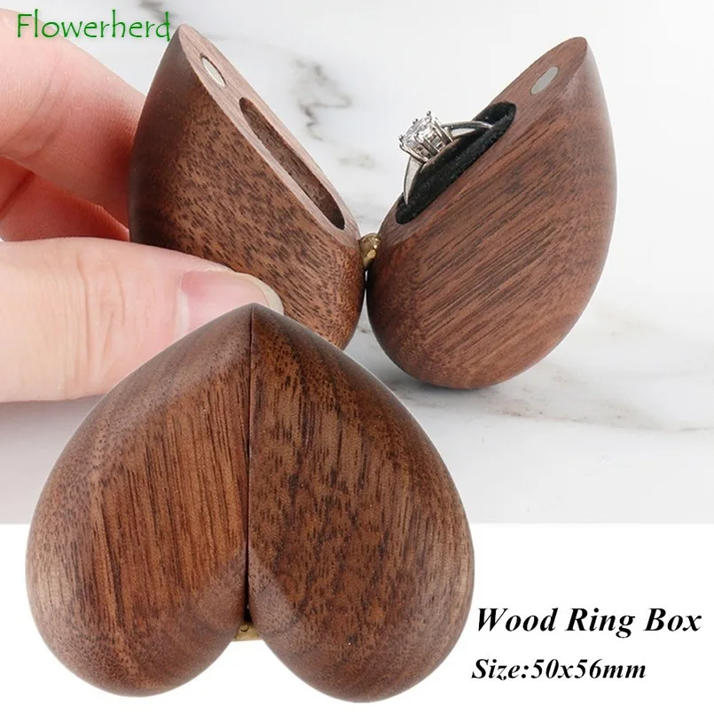 Футляр для колец из орехового дерева в форме сердца, бархатный мягкий внутренний держатель, органайзер, деревянная коробка для ювелирных изделий, чехол для помолвки
