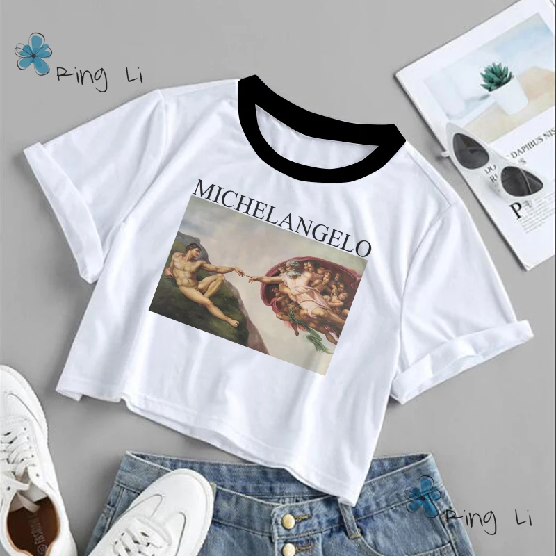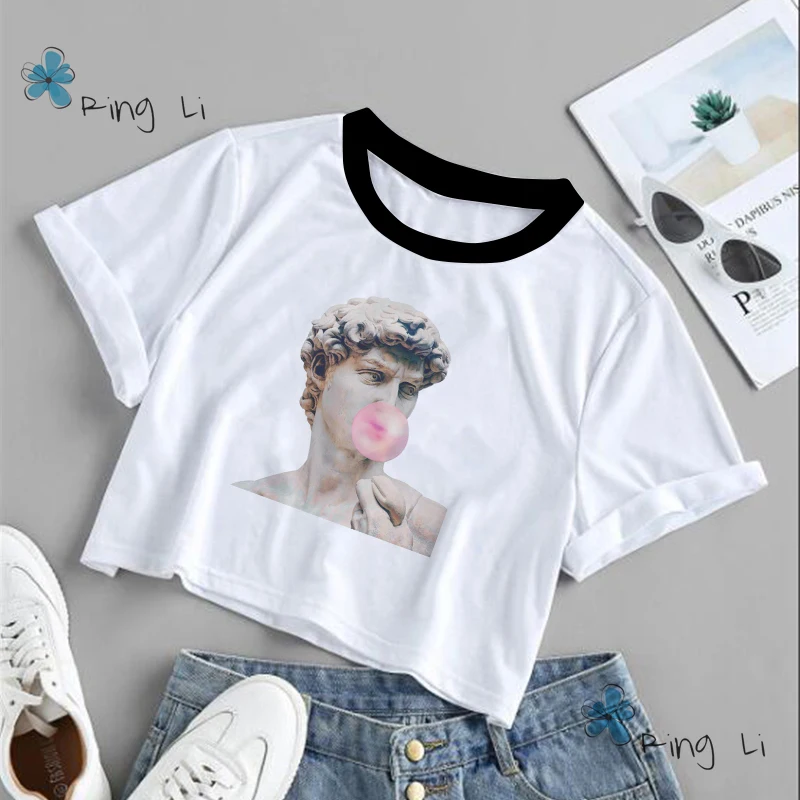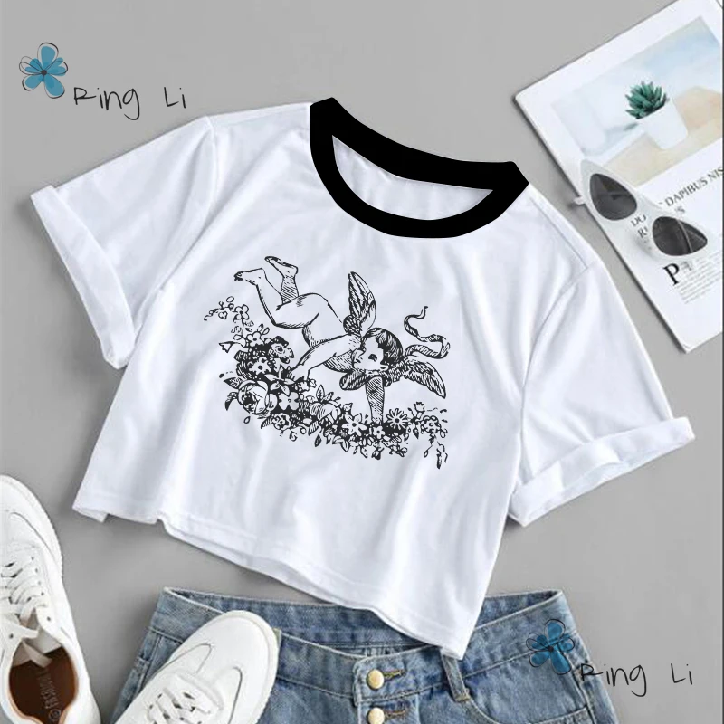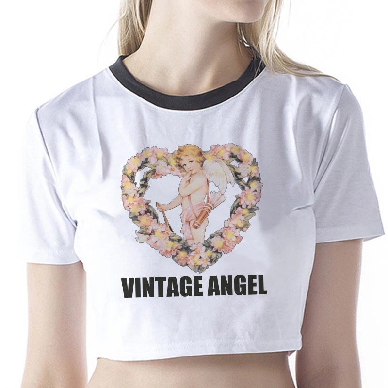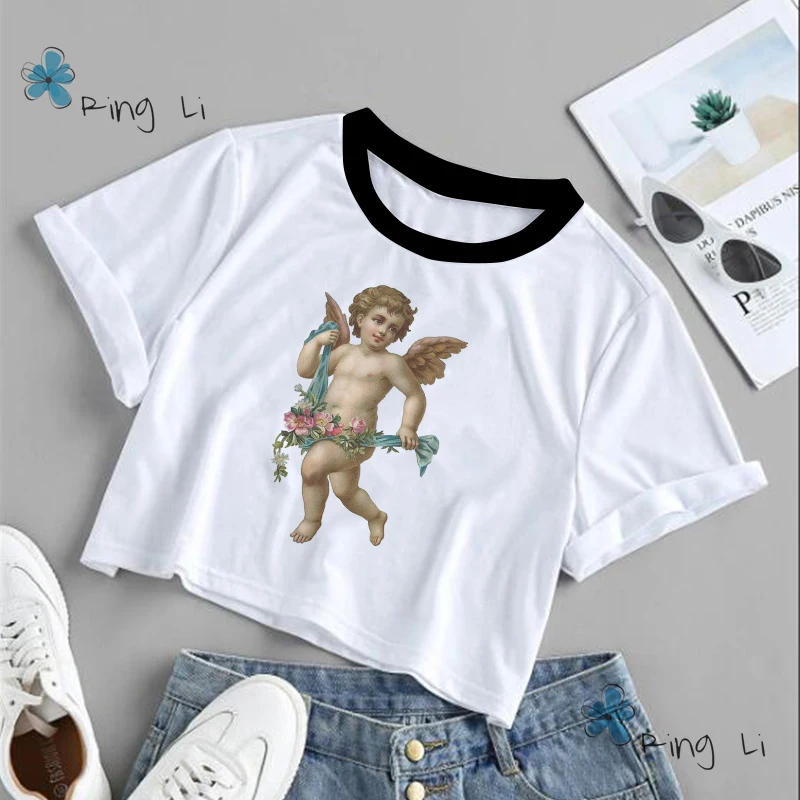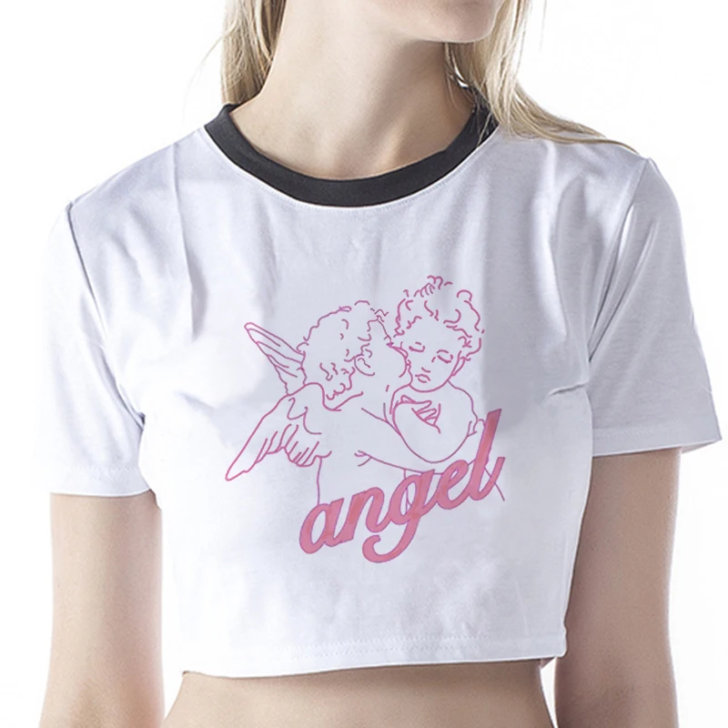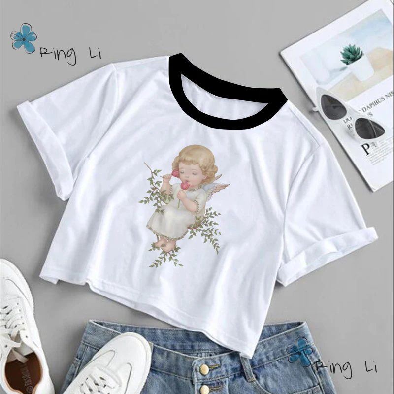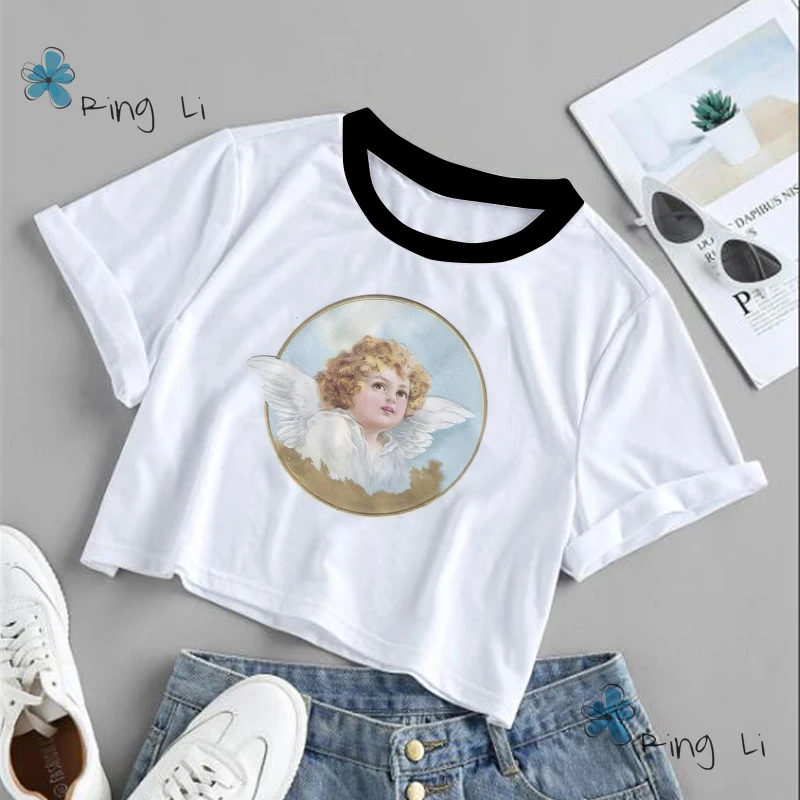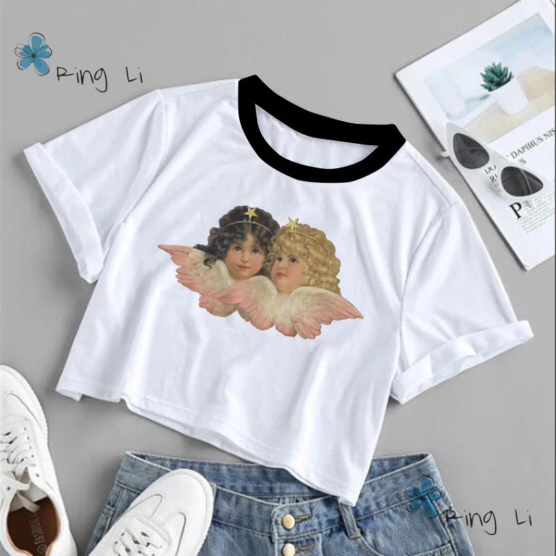Детская майка с принтом ангела, уличная одежда в стиле Харадзюку, с коротким рукавом, большого размера, Y2k, лето 2021