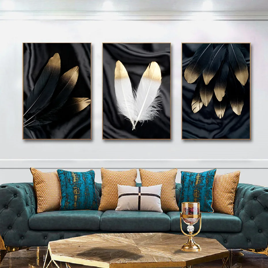 Черный и белый минималистский Золотое перо шелка роскошный скандинавский Стиль декоративная картина на холсте для гостиной исследование искусство украшения
