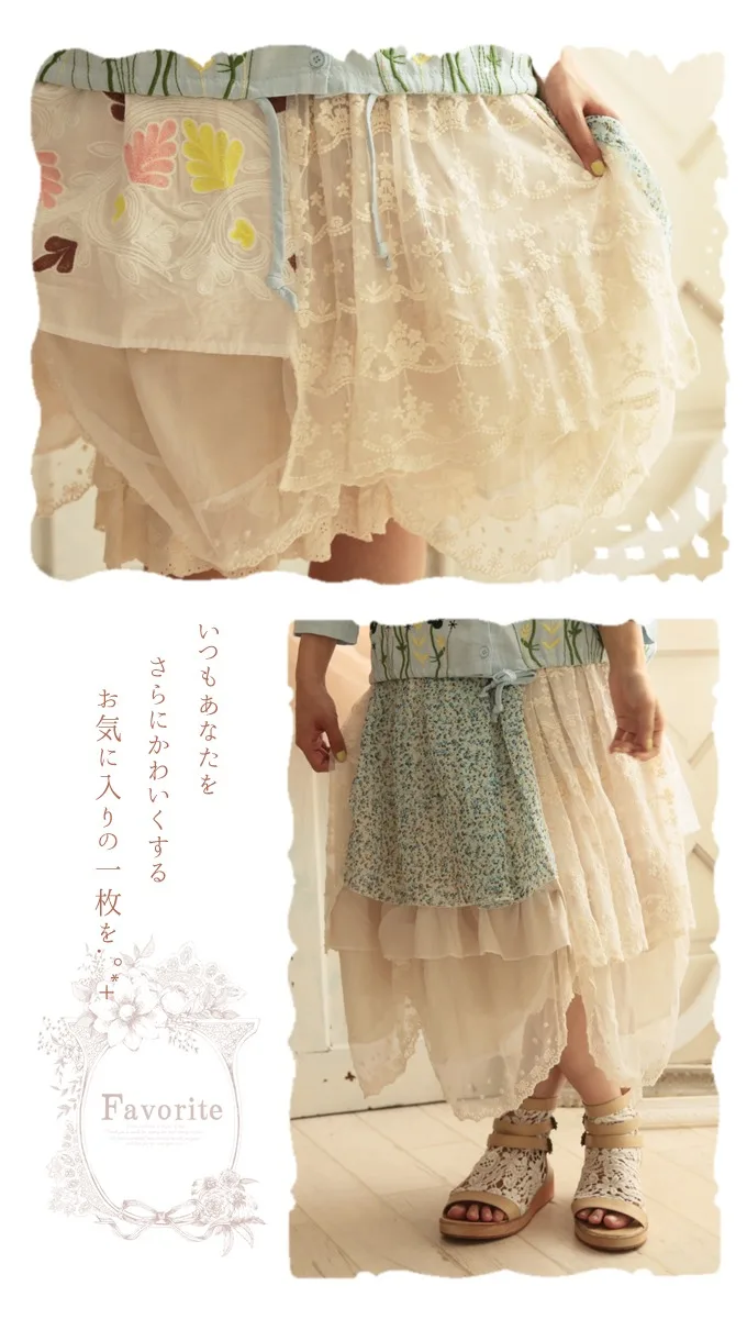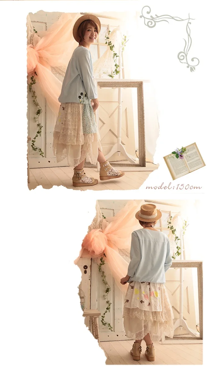 Японская многослойная кружевная юбка с цветочным узором, женская одежда, Сказочная Хлопковая женская Милая юбка принцессы Mori Girl A189