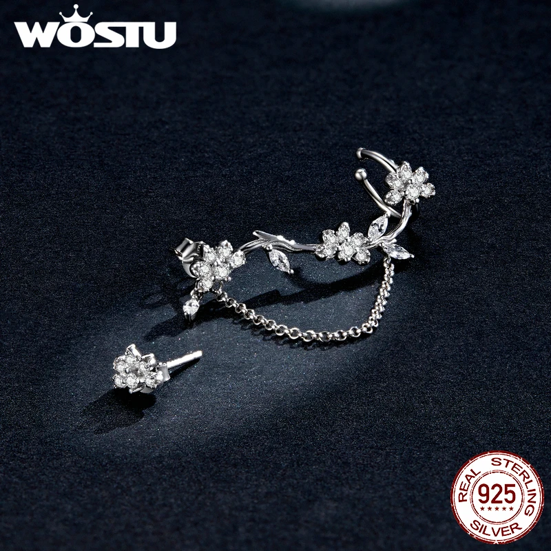 WOSTU Настоящее 925 стерлингового серебра цветущие цветы серьги-гвоздики простые серьги для женщин Мода серебряные ювелирные изделия CTE476