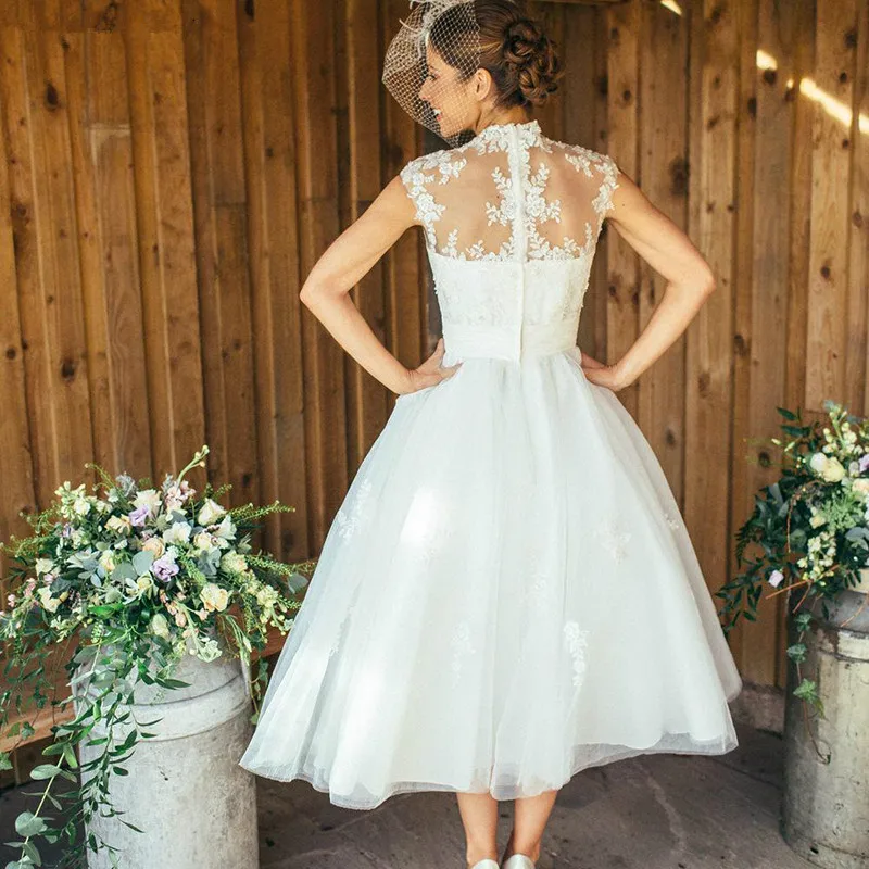 Короткие свадебные платья, белое кружевное платье длиной до середин...