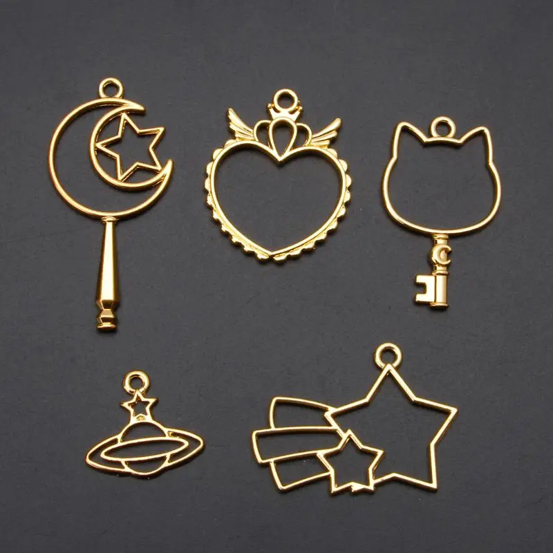 Оправа для подвесок 83XC, 5 шт., в форме звезды, Луны, планеты, УФ-смолы, установка в открытую рамку, для изготовления ювелирных изделий