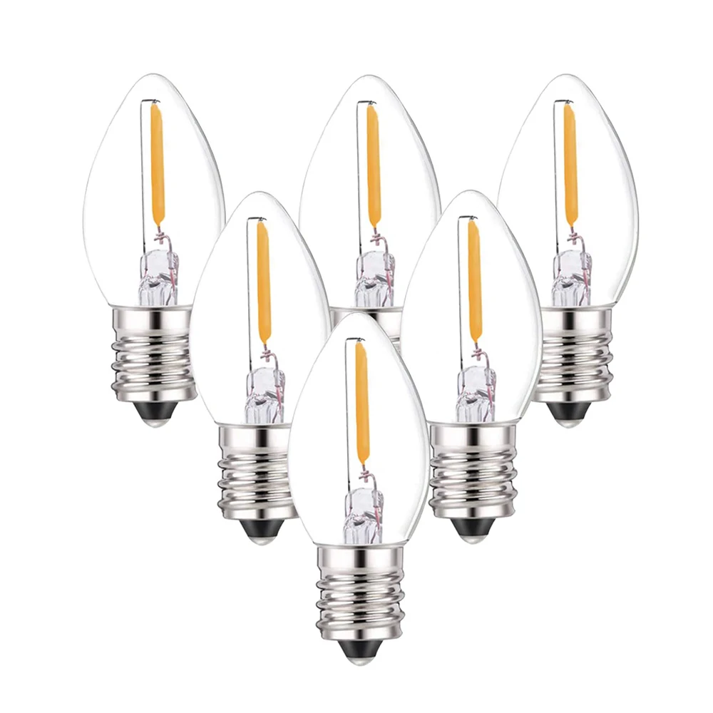 C7 светодиодный ные лампы 0,5 Вт светодиодсветодиодный ночные светильник пы с нитью накаливания E12 Candelabra прозрачные стеклянные лампы-свечи теплый белый 2700K для гирлянсветильник s