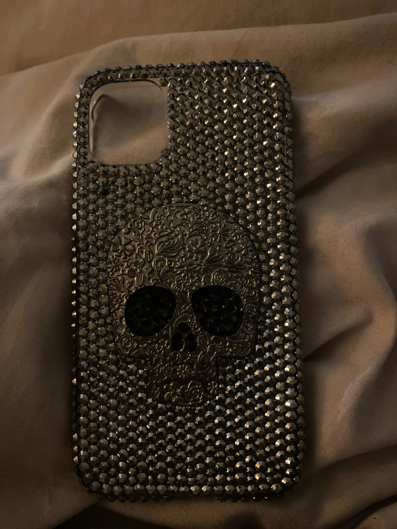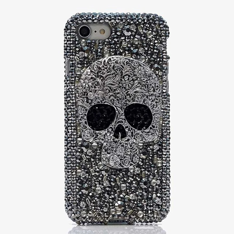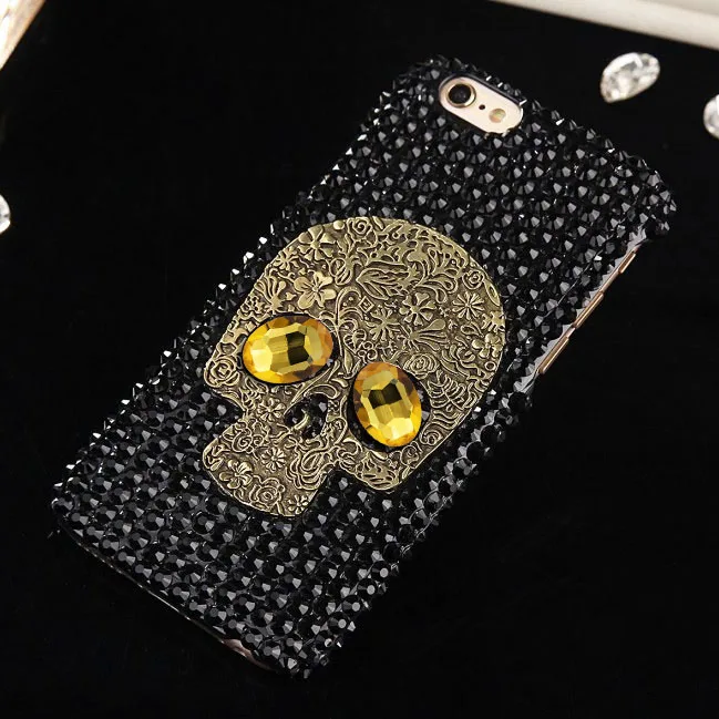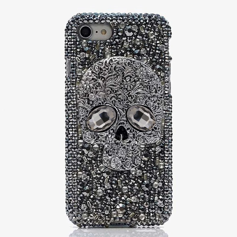 Чехол для телефона с черепом, защитный чехол для iPhone 12 13 Pro Max Mini 11 XS XR X 8 7 6 Plus 12 mini 11, бриллиантовый чехол ручной работы