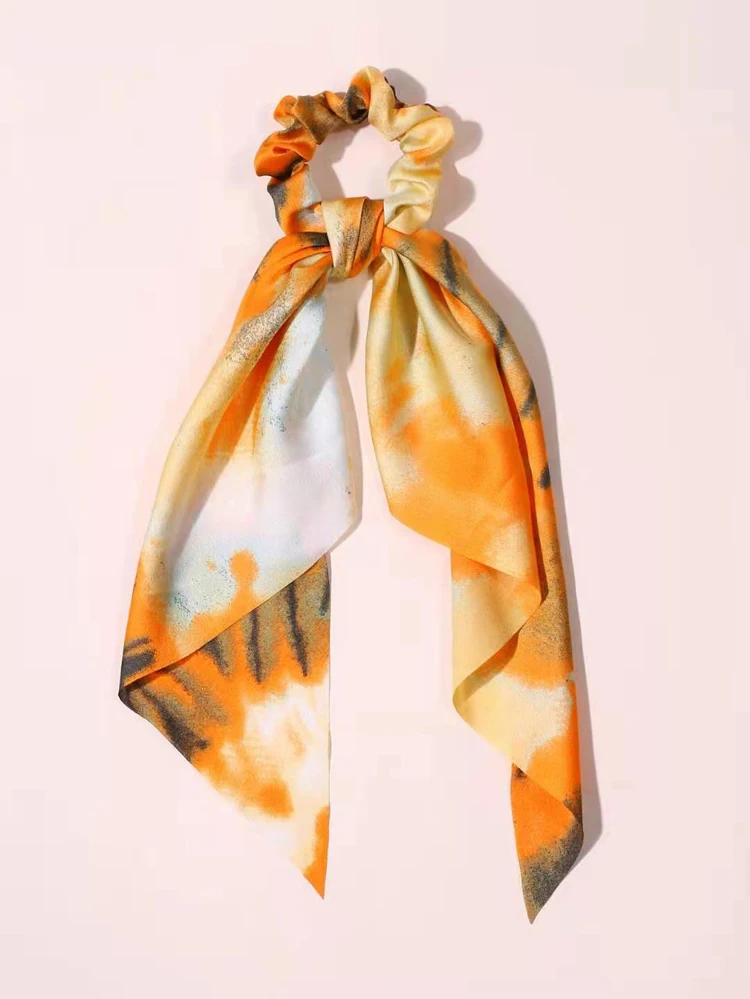 Атласный галстук-краситель, Длинная атласная лента для волос, Женский Повседневный аксессуар для волос, эластичная лента, галстук-краситель, галстук-бабочка с принтом, хвост