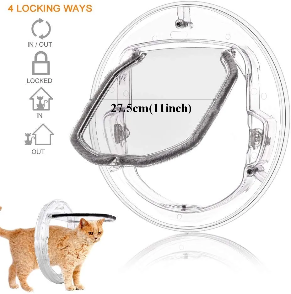 Большой 4-полосная круглый собака двери домашней кошки двери с замком Безопасность ПЭТ вход прозрачное стеклянное для окон Щенок Отверстие кошка собака двери