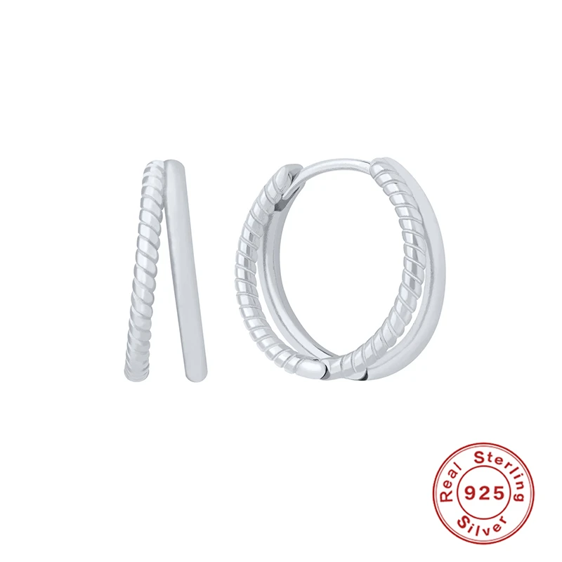 Серьги-кольца женские из серебра 925 пробы, двухслойные, блестящие