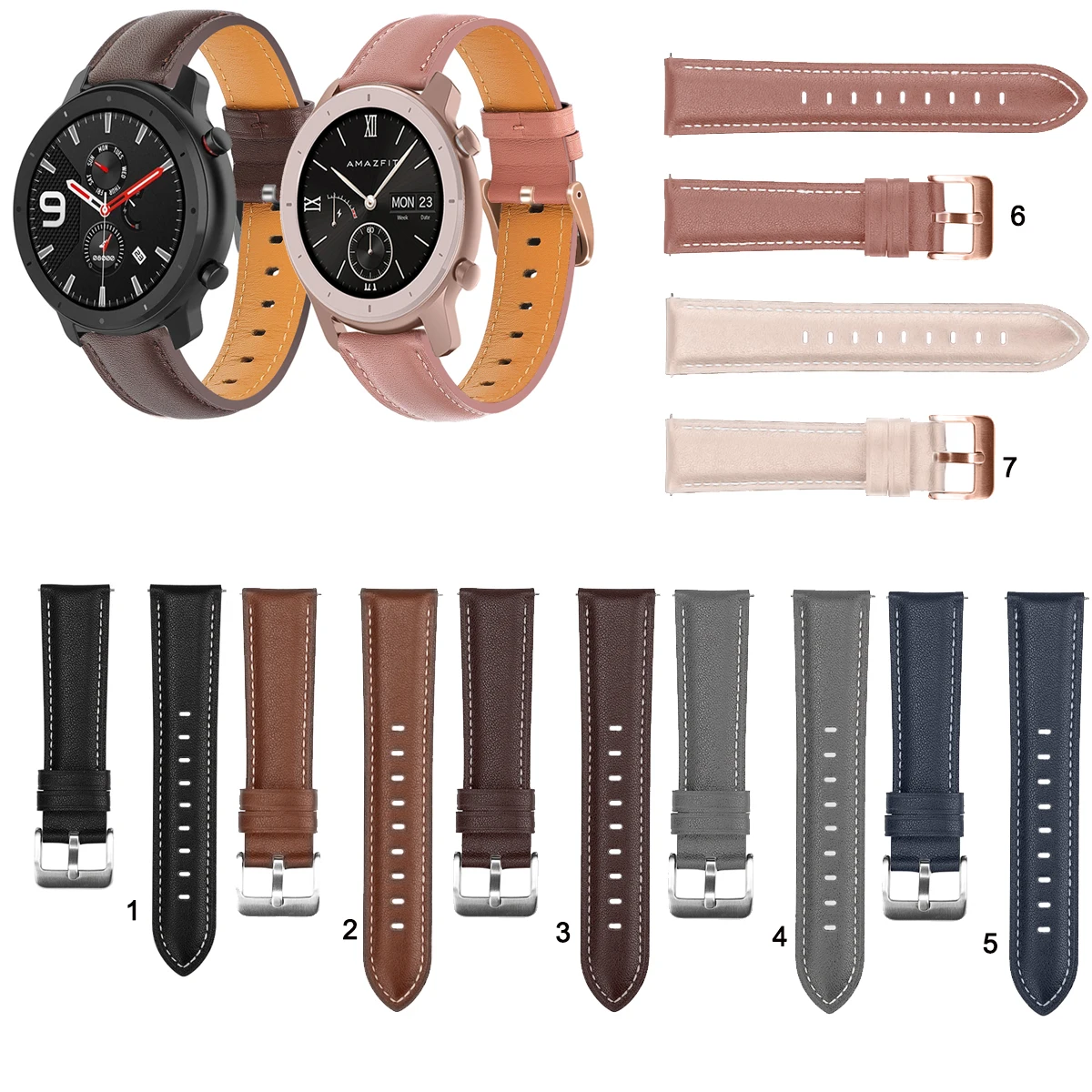 Ремешок кожаный для Huami Amazfit GTR 42 мм 47 мм 2e GTR2 GTR3 Pro, модный сменный элегантный браслет для наручных часов, 20 мм 22 мм