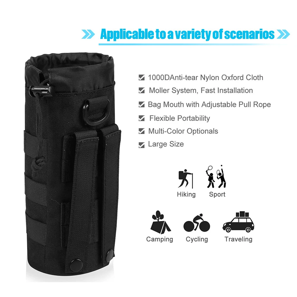 Тактическая Сумка для бутылки с водой Molle, военная сумка для чайника для кемпинга, походов, рыбалки, сумка на шнурке для рюкзака