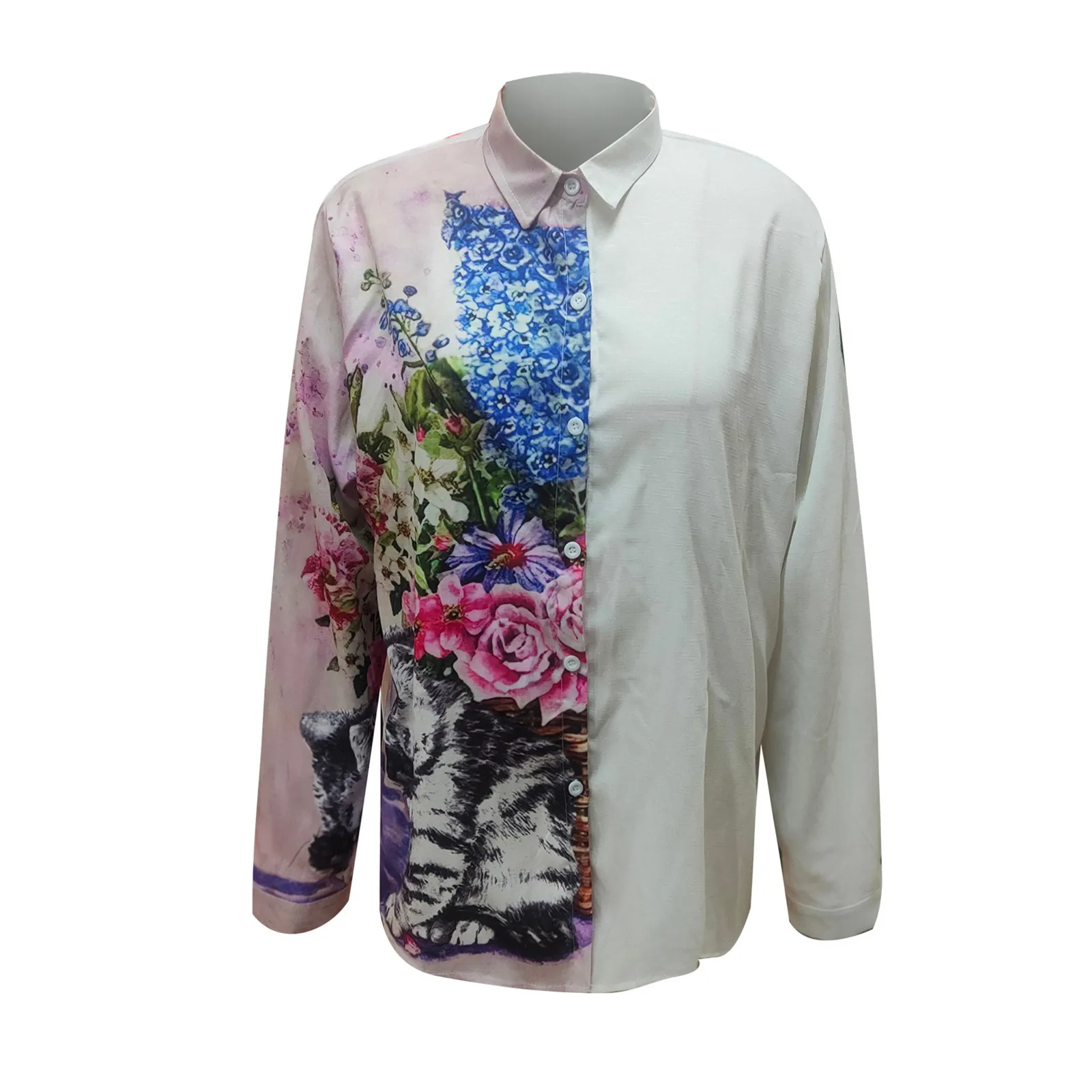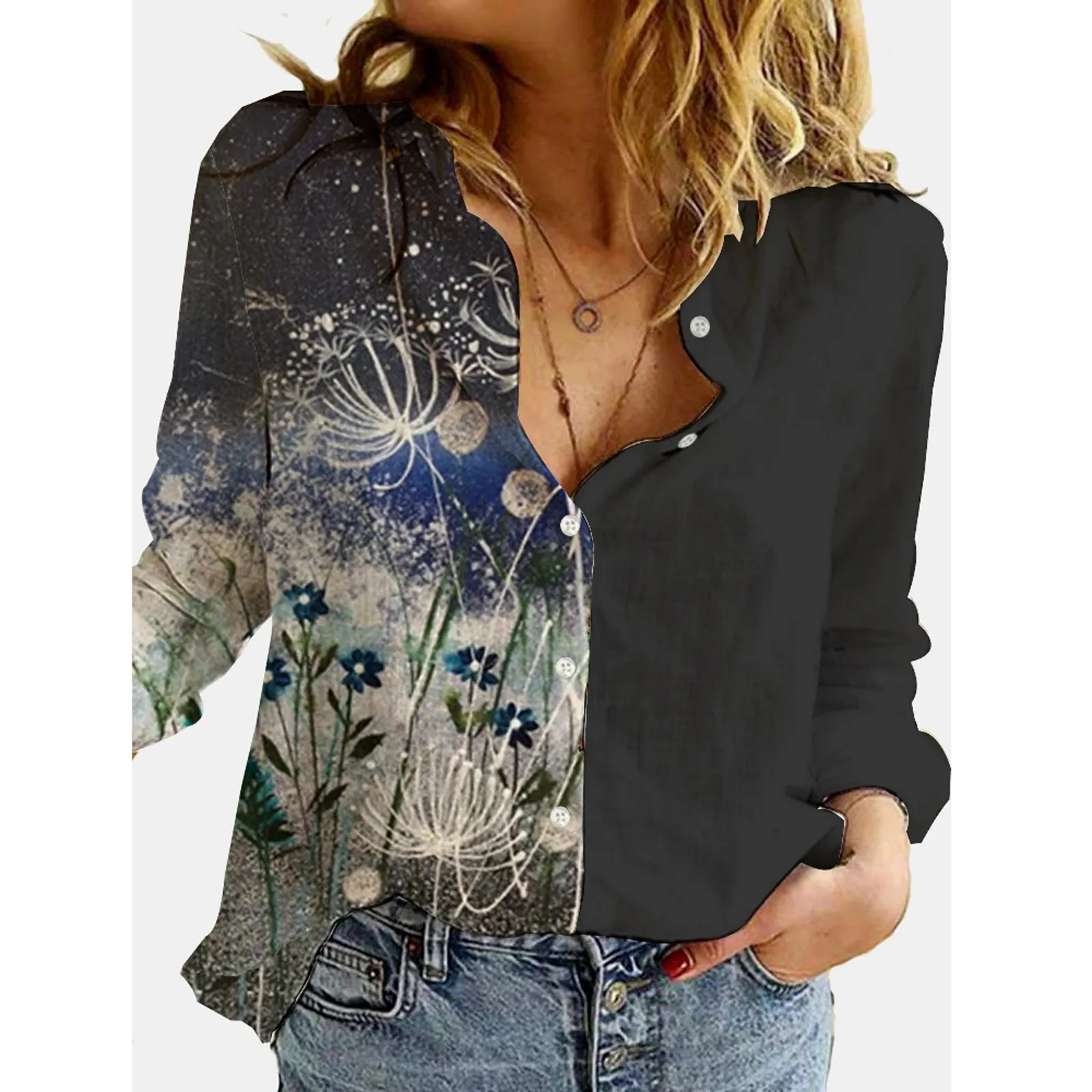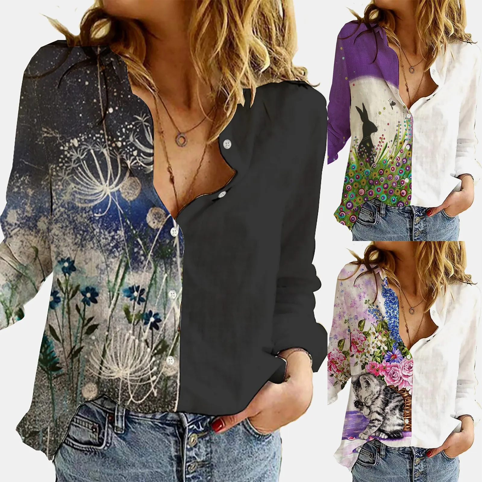 Женская Повседневная Блузка с отложным воротником, винтажная Свободная блузка с цветным принтом, Офисная рубашка с длинным рукавом, Топ, 4 #